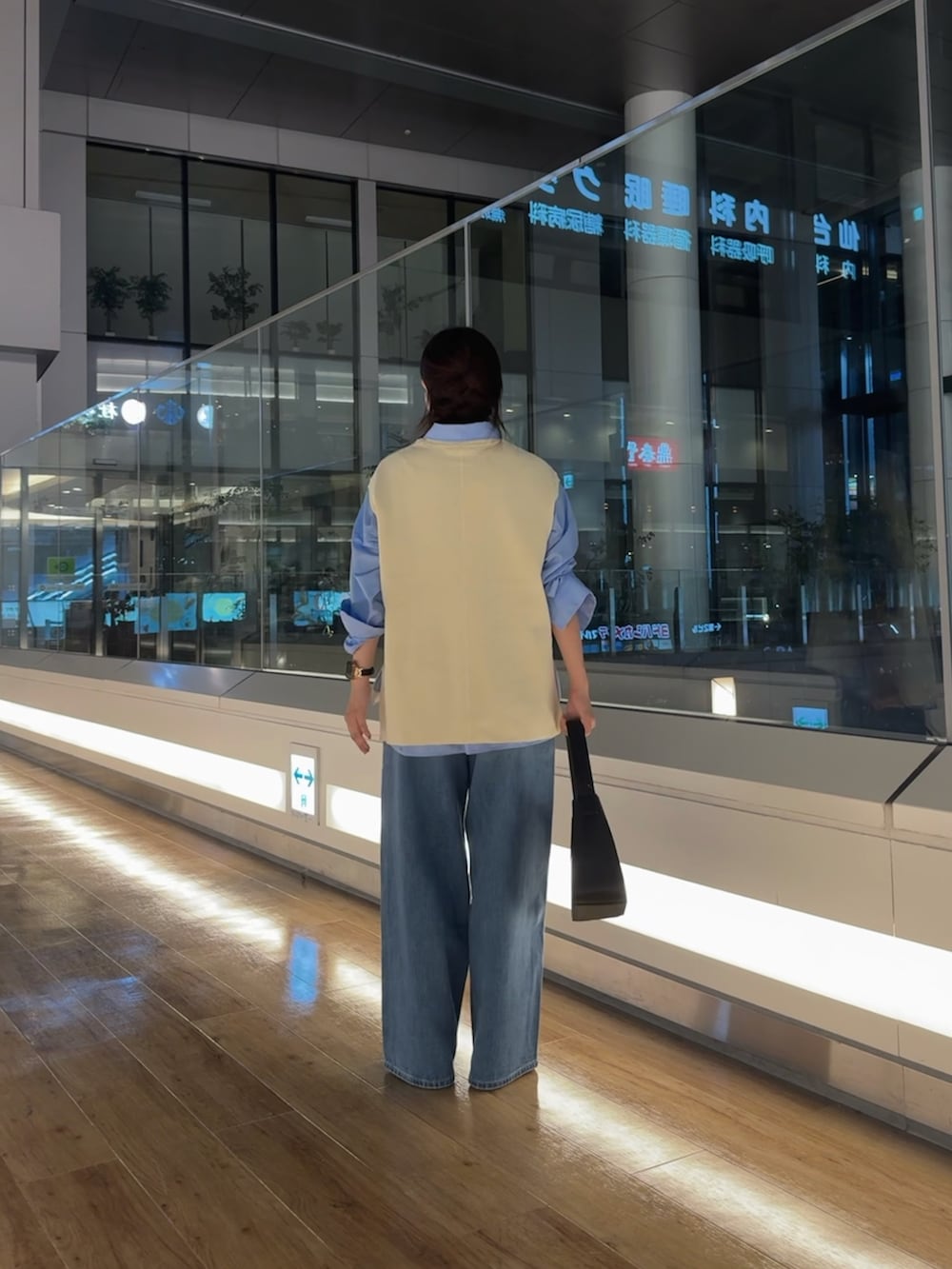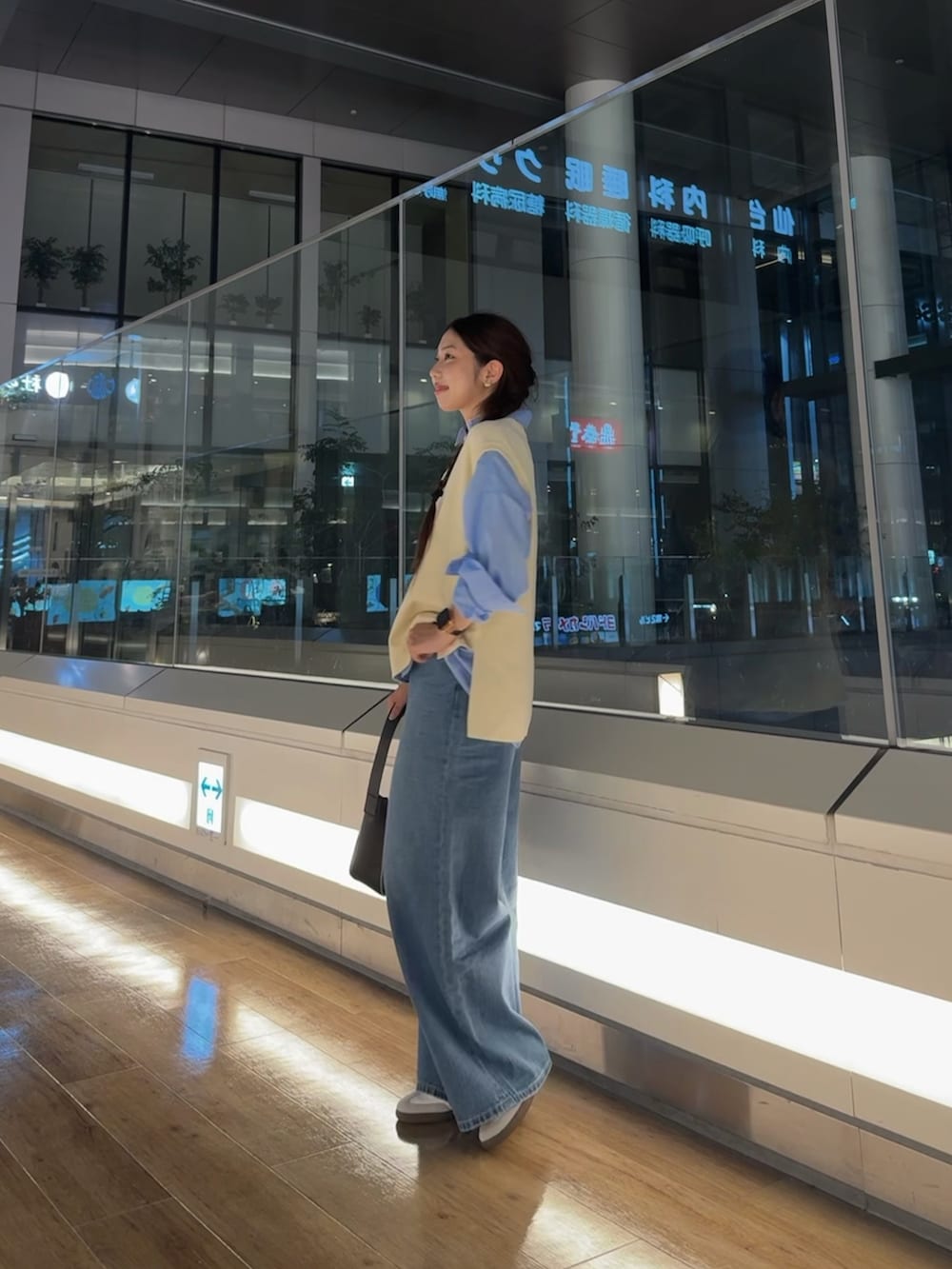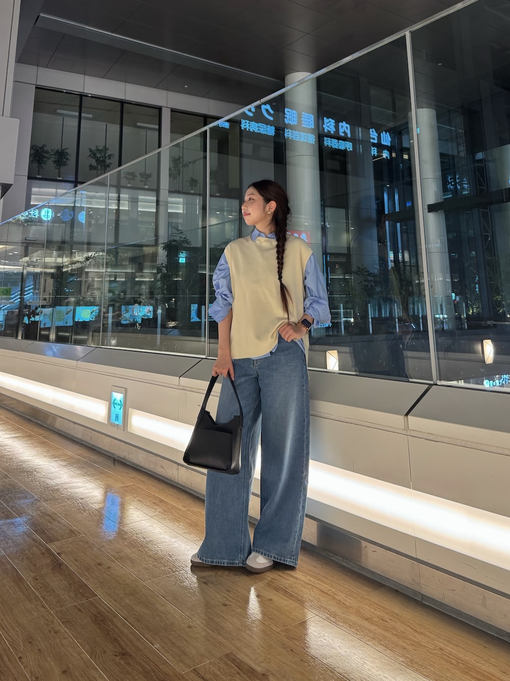 またブルーシャツはそのまま着ても可愛いですが、今からの時期はニットやスウェットの中に着て、重ね着アイテムとしても活躍してくれます🧏🏻♀️✨