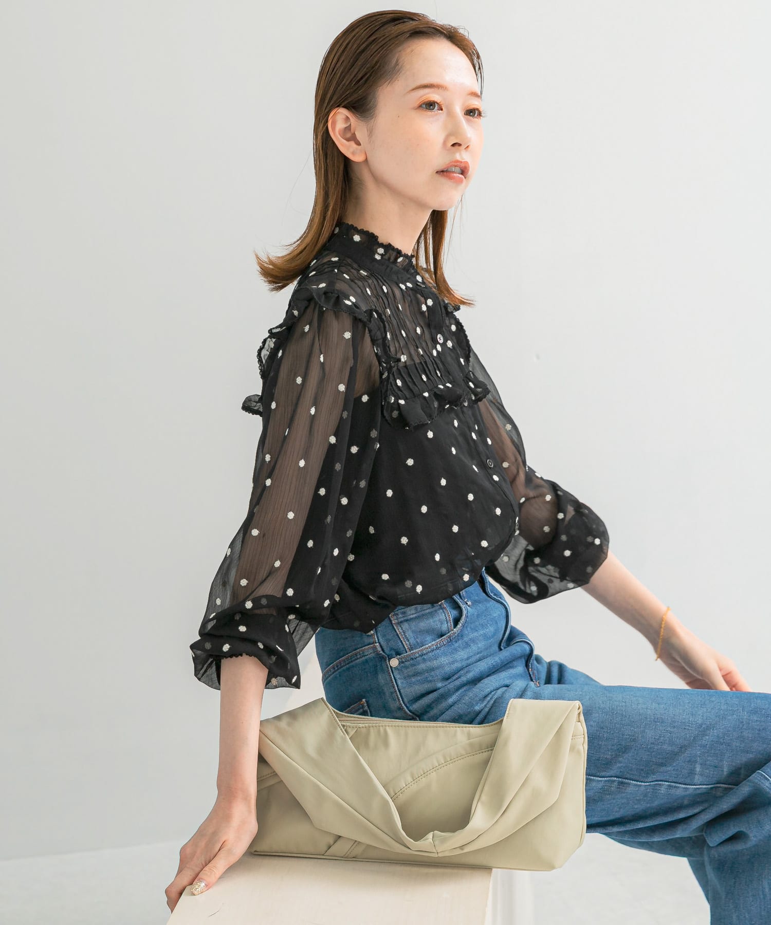 『WEB限定』フラワー刺繍フリルネックブラウス