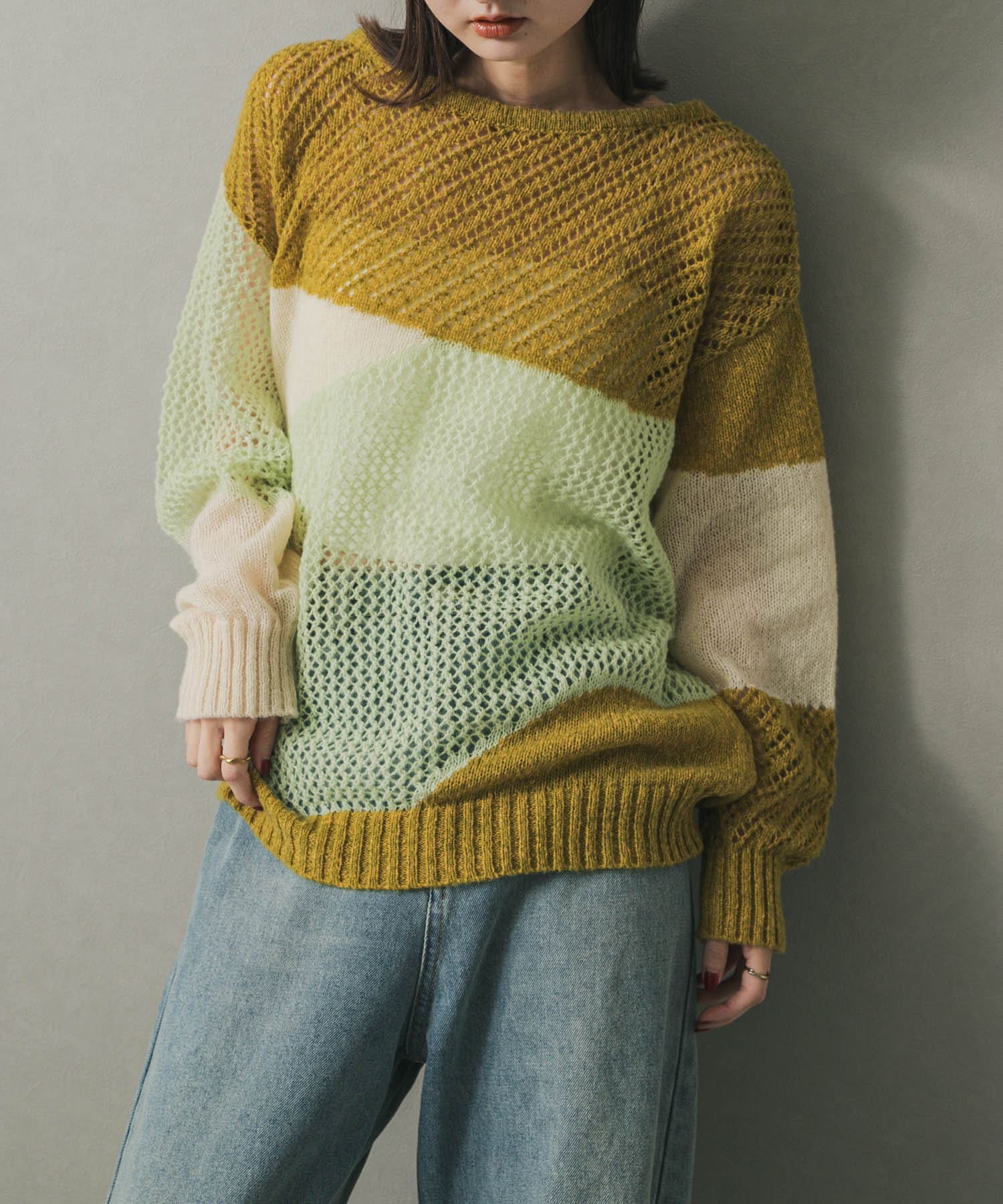 SENSE OF PLACEパッチワークメッシュセーター- 着用カラー: