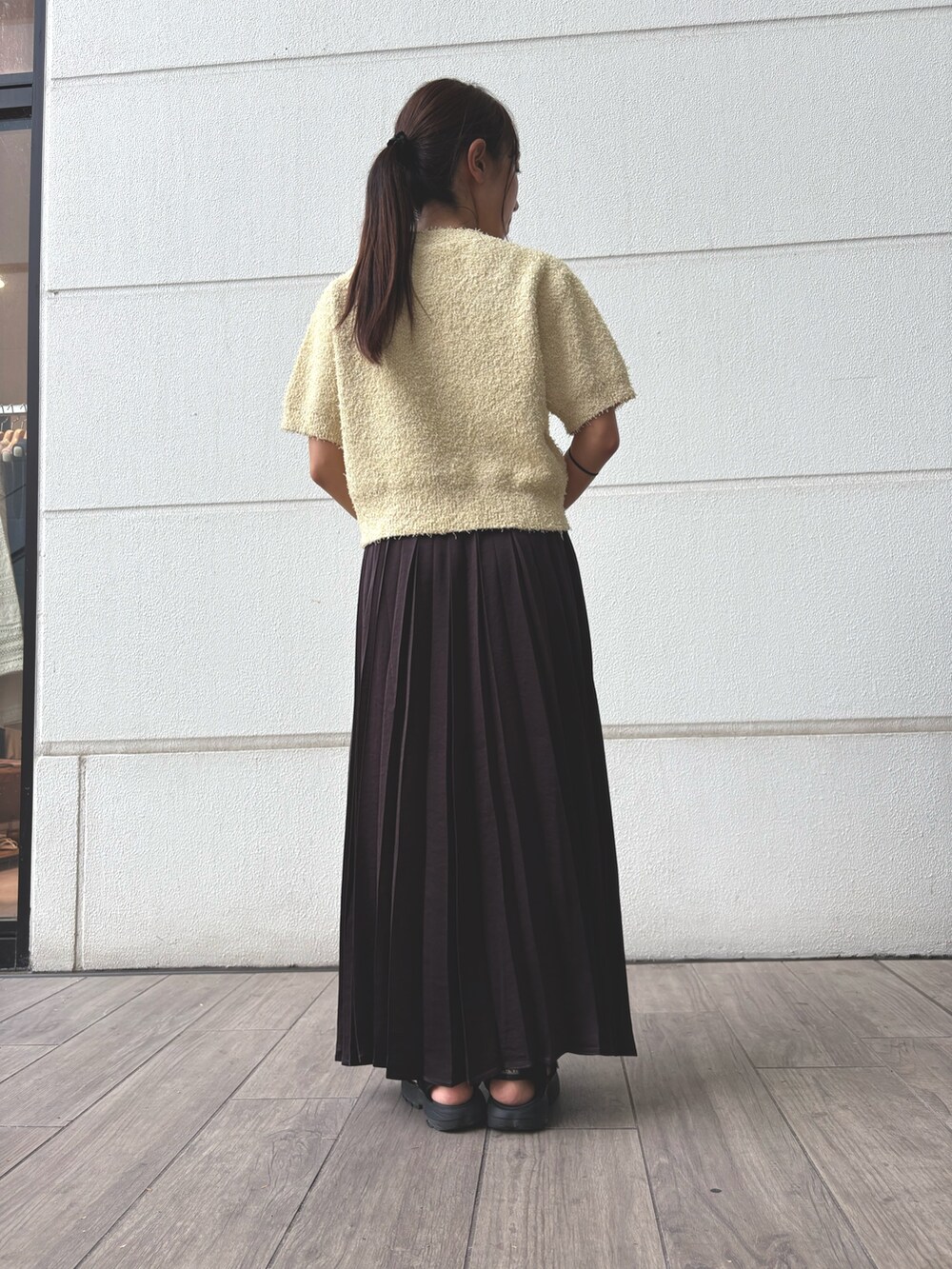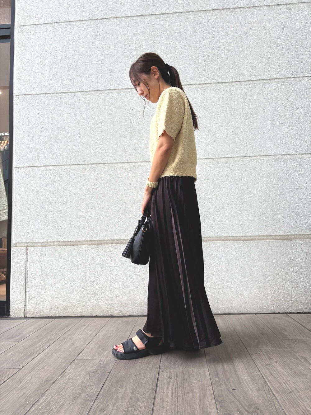 スカートは高級感のある色味と光沢が秋らしくおすすめです🍂