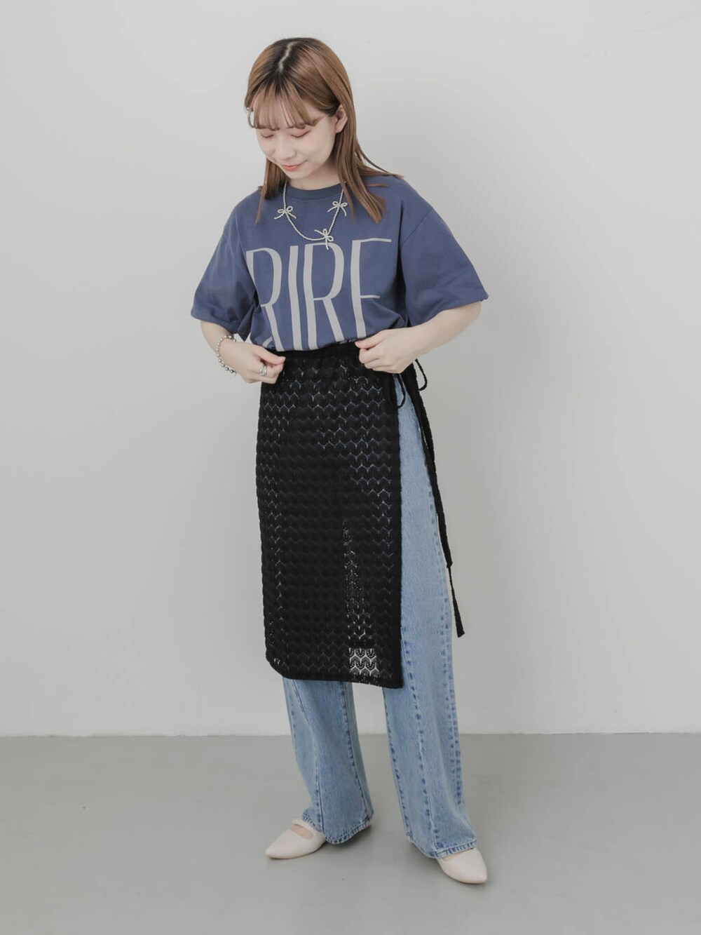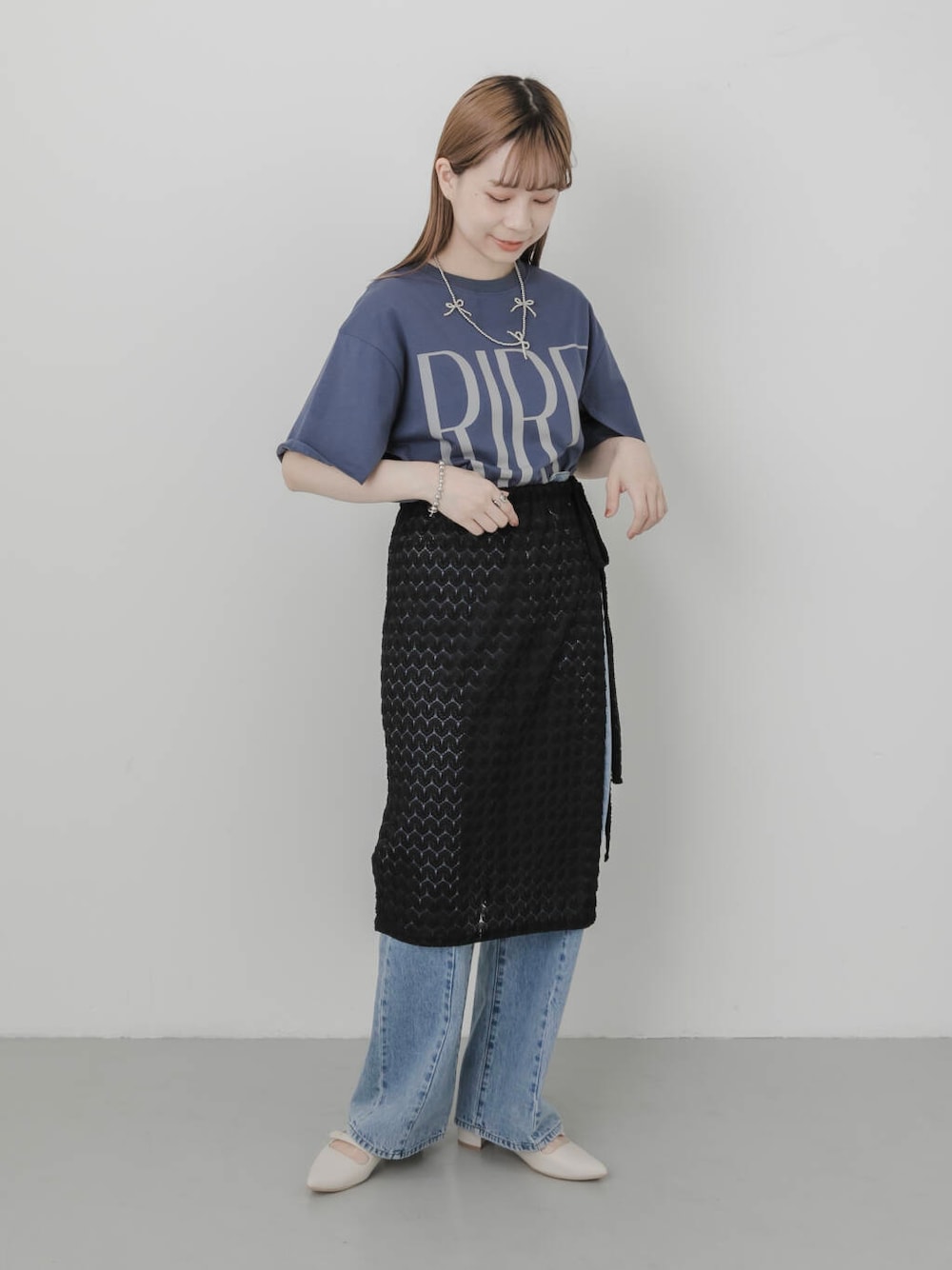 アクセサリーや、トレンドのラップスカートを合わせて今年らしいコーディネートにしてみました。