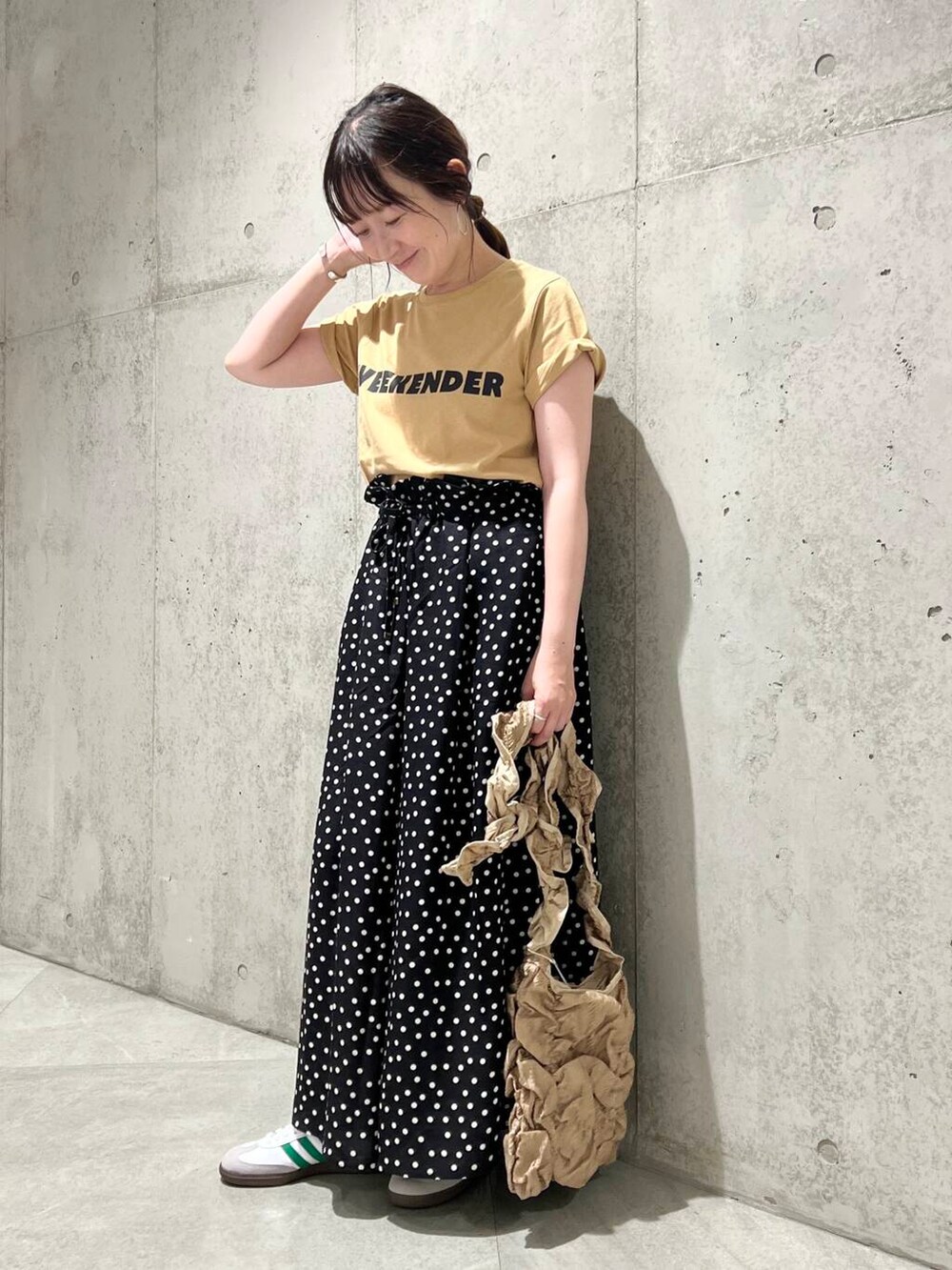 今回は、ドット柄が華やかな印象の、スカーチョを合わせました。