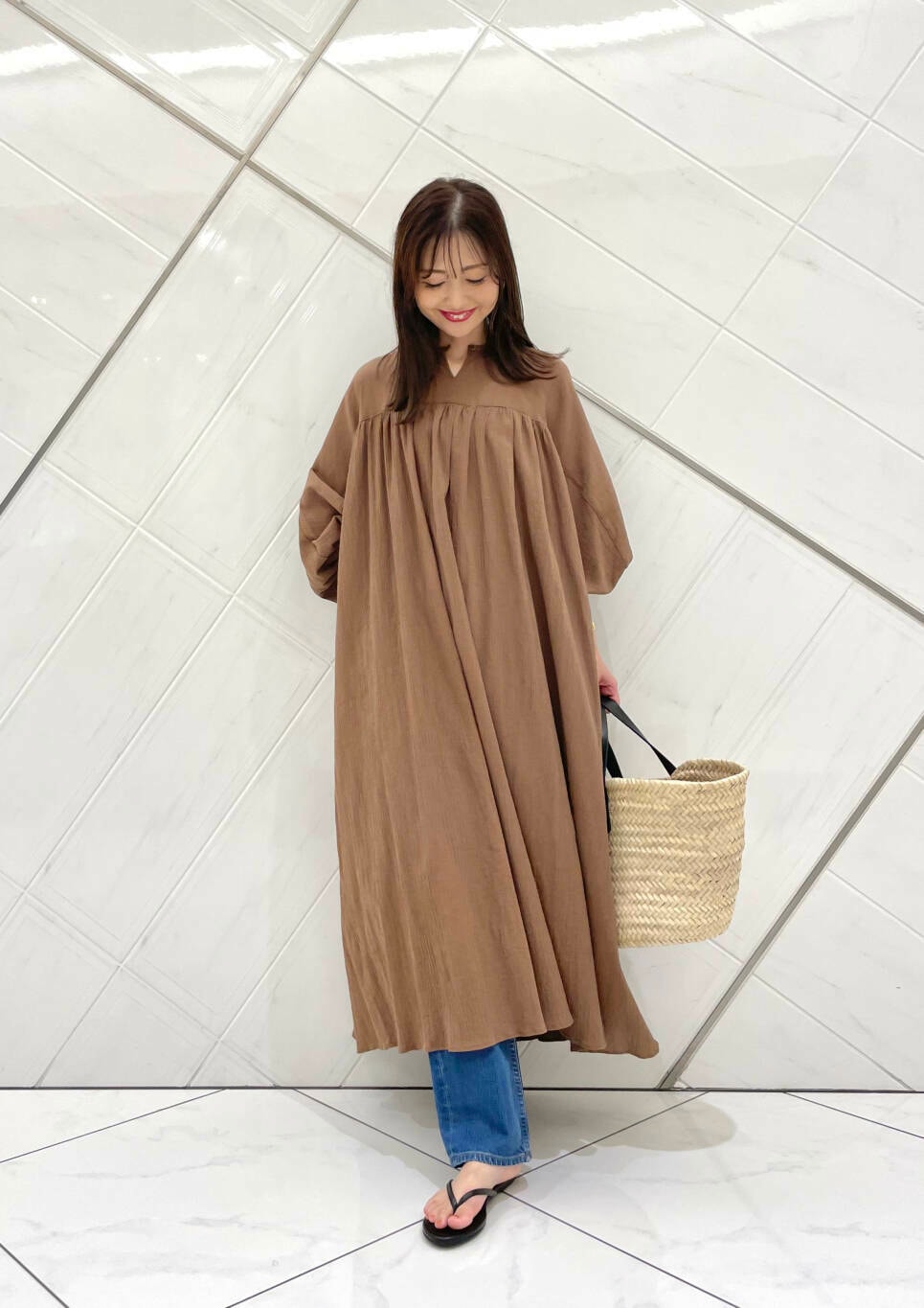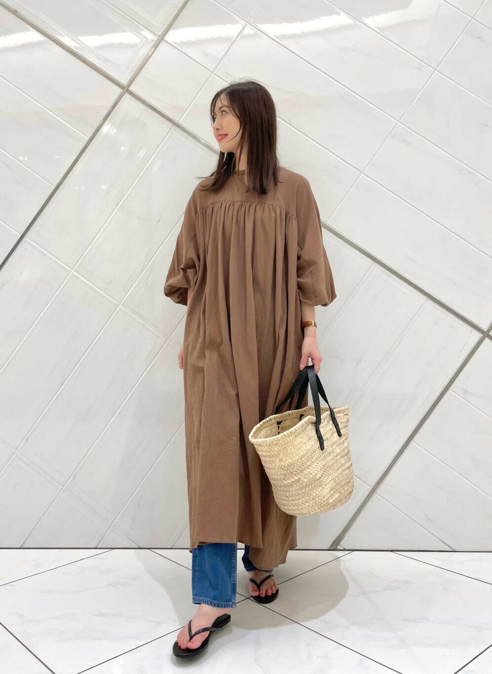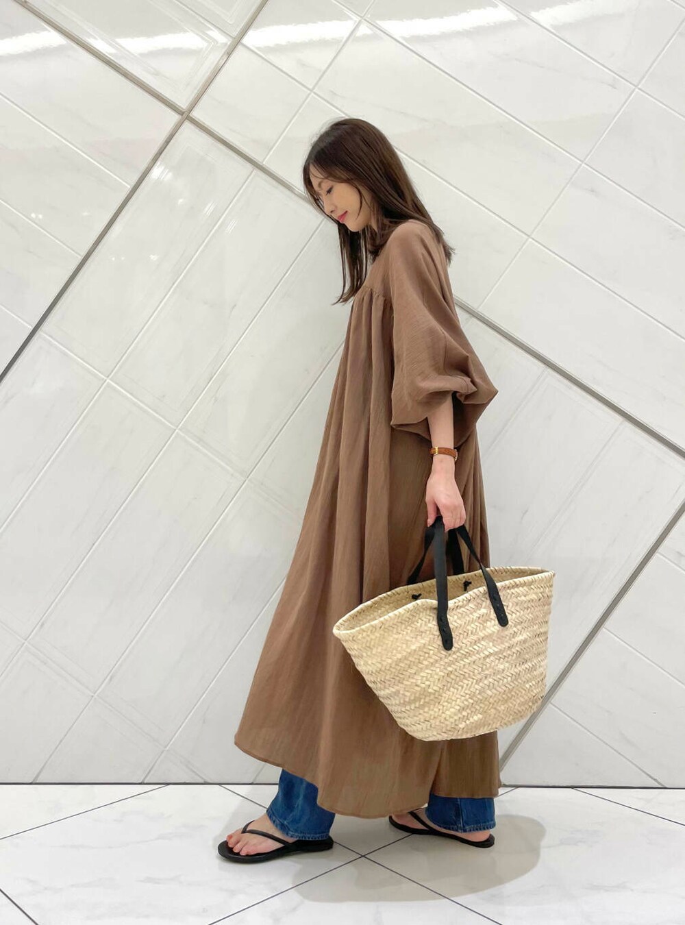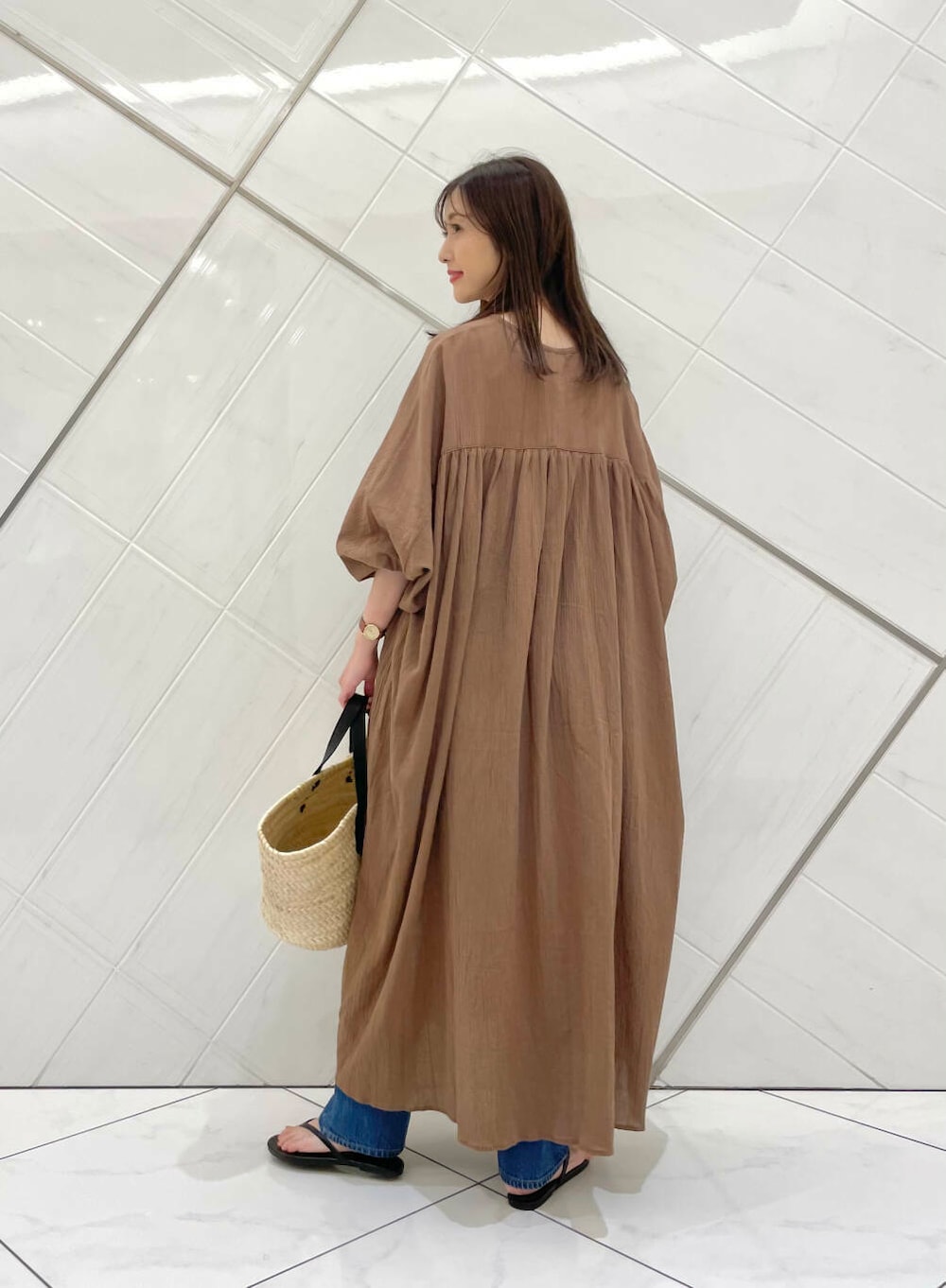 全体的にゆったりとしたサイズ感で袖口はゴム仕様になっているのでまくるとボリュームスリーブが可愛らしい1着です。