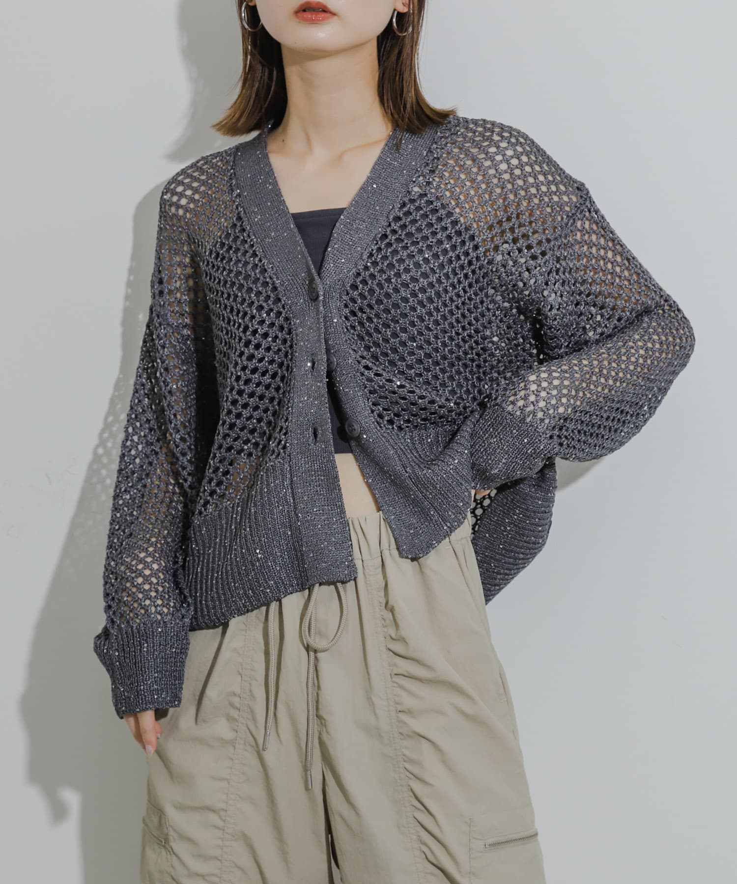SENSE OF PLACEスパンコールメッシュカーディガン- カラー: