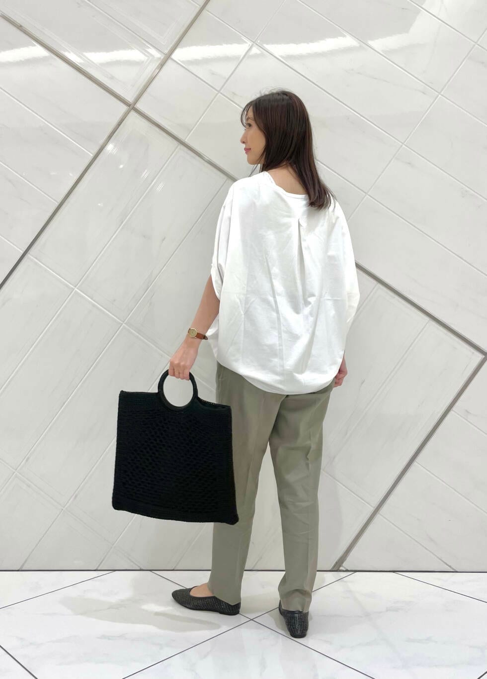 袖は肘あたりから腕が出るので二の腕がカバーできるのも嬉しいポイントで、ボトムスも選びません(^^)