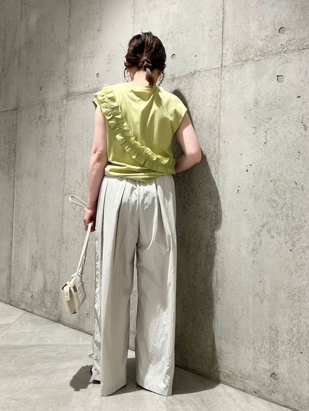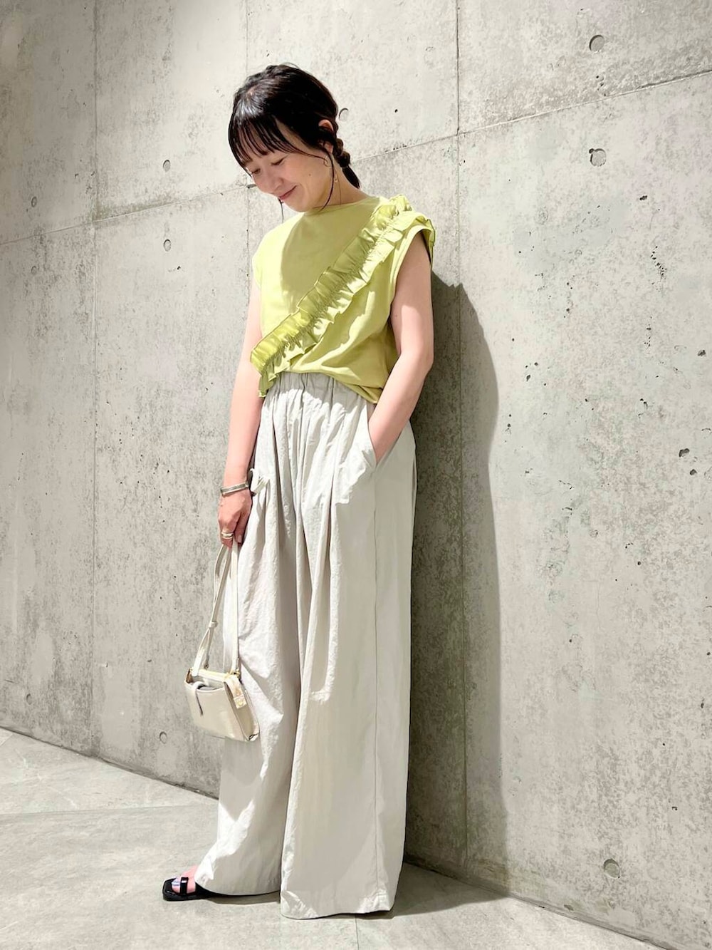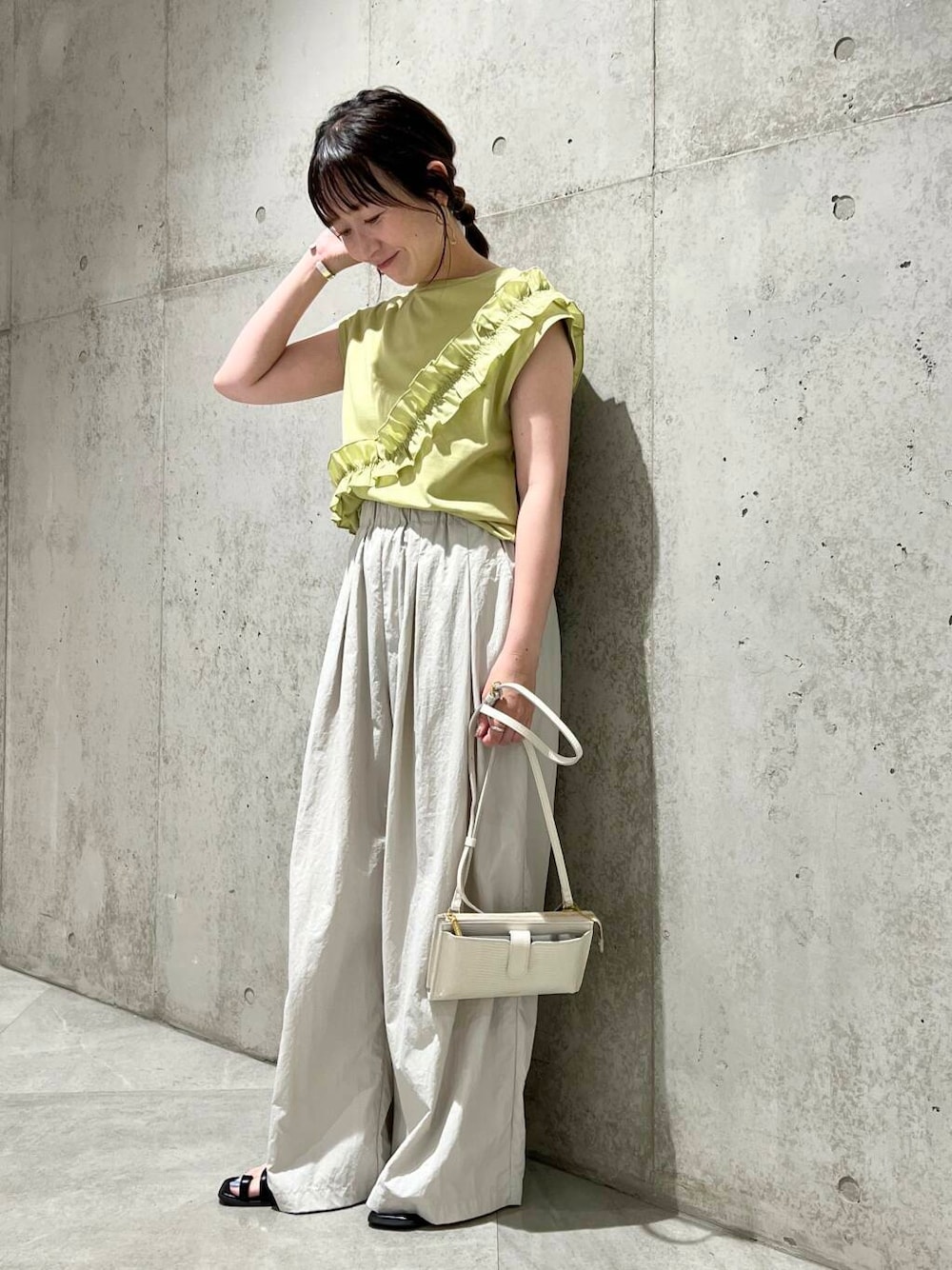 フリル部分とカットソー部分が同色なので、甘くなりすぎず、合わせやすいのがポイント。