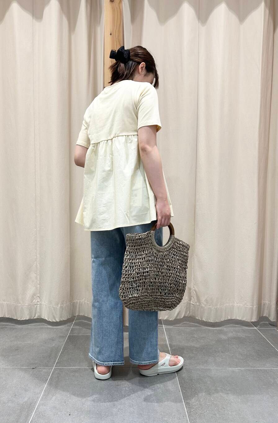 夏らしい黄色のトップスにデニムを合わせ、すぐ着てお出かけできるコーデです!