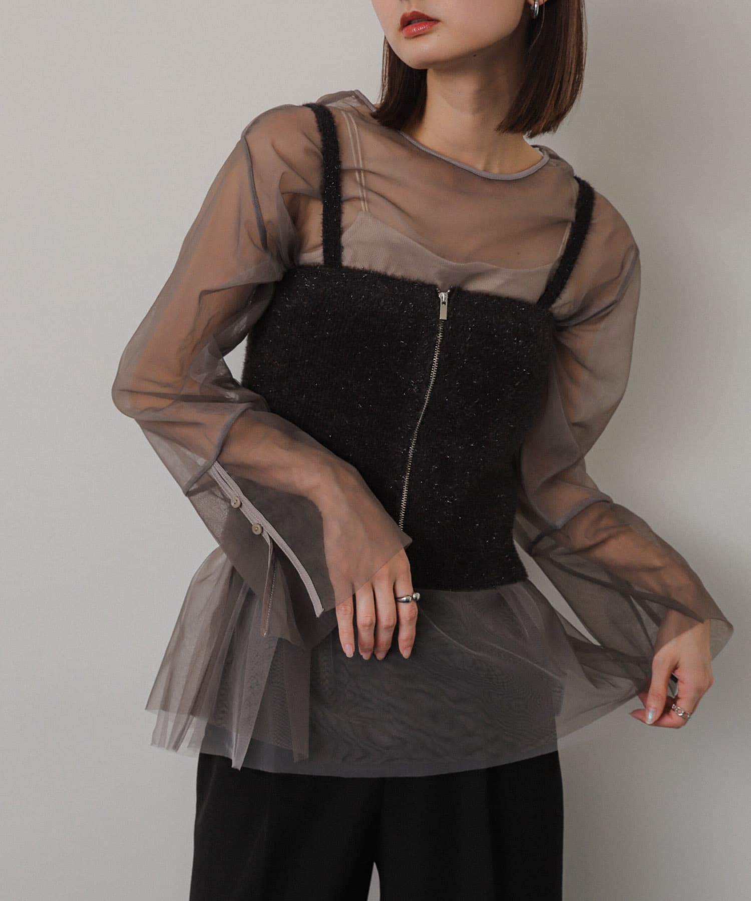 シアーのトップスはレイヤードされてて透け感も程よく使いやすいです!