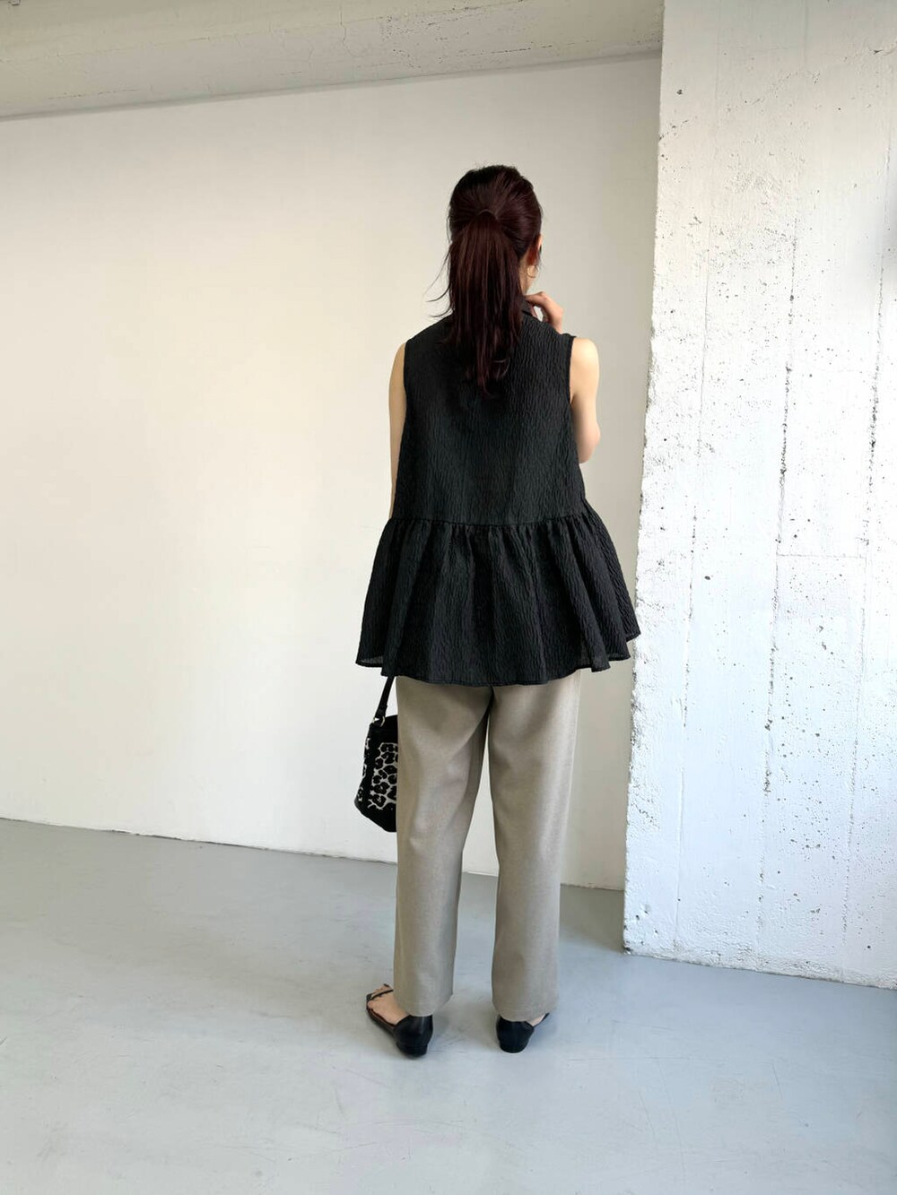 お腹周りやヒップラインをさり気なくカバーするペプラムブラウス♪