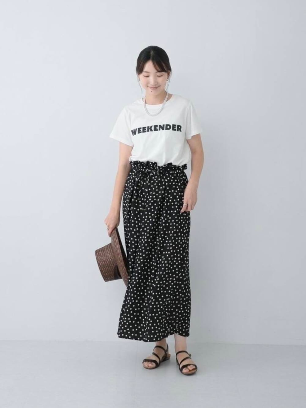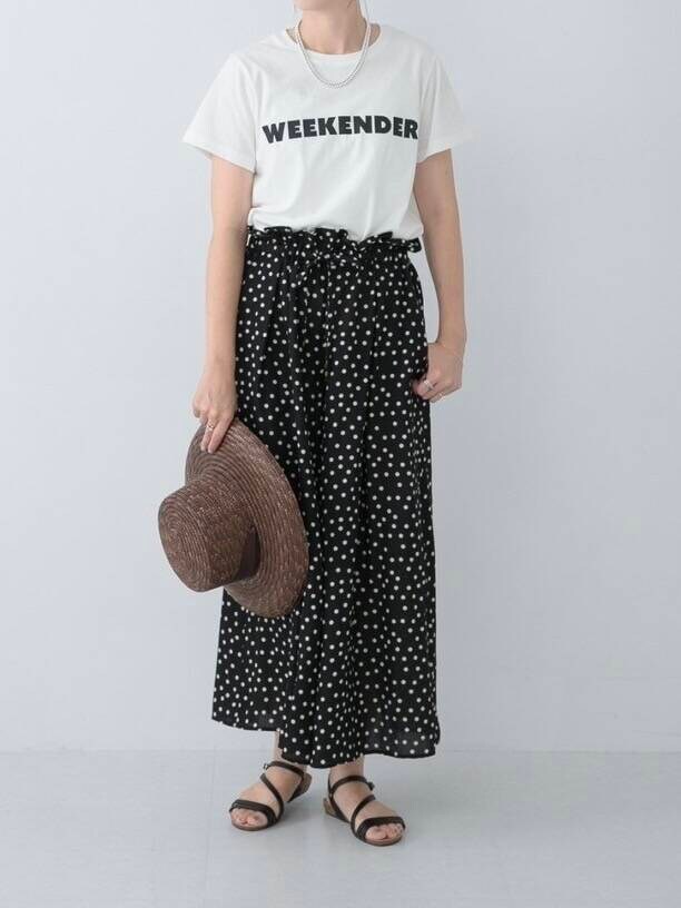 今回はドットのスカーチョと合わせたモノトーンコーデにしてみました!