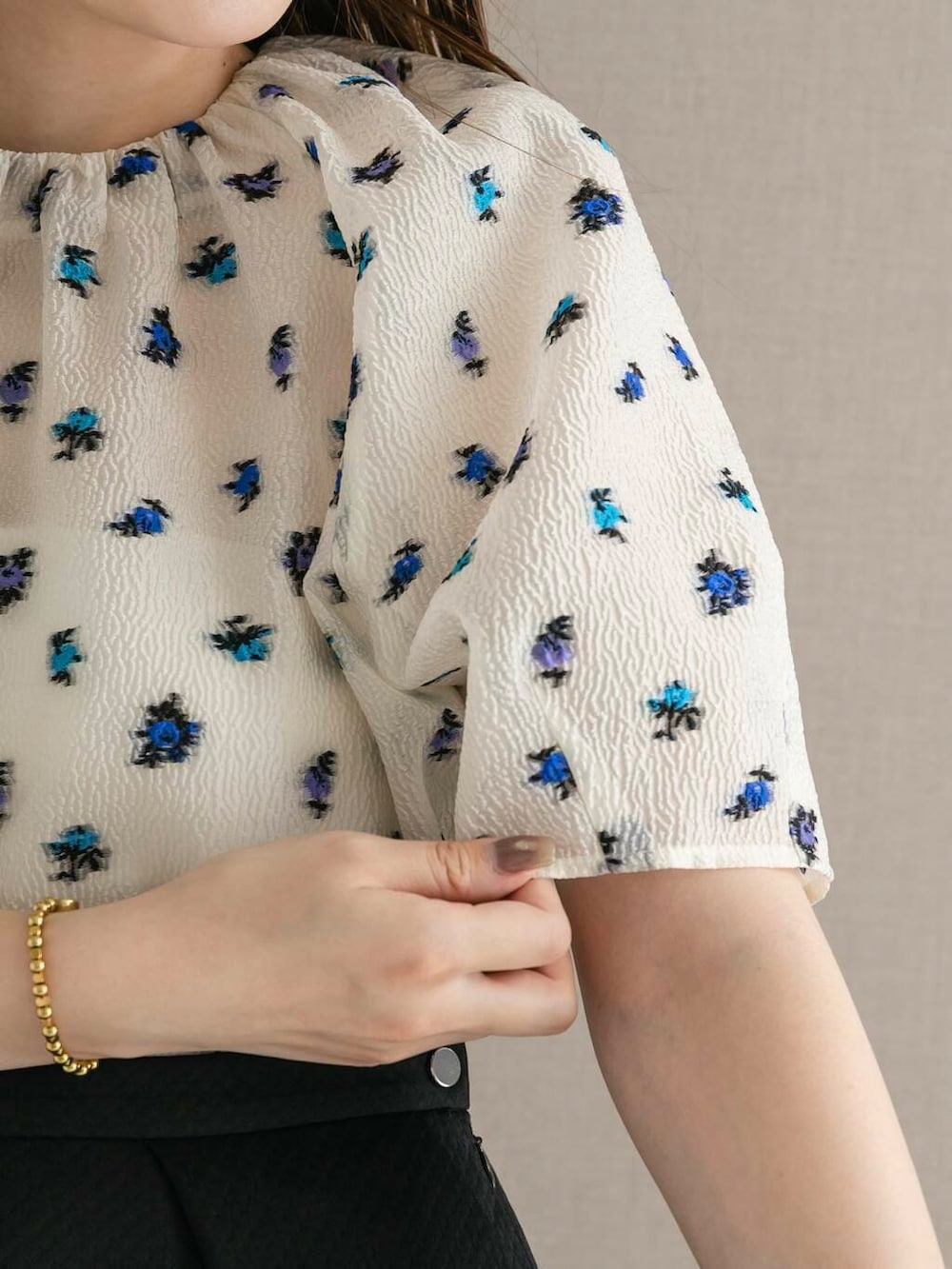 二の腕を隠してくれるバルーンスリーブと、シワが目立ちにくい素材感が魅力的です‼︎
