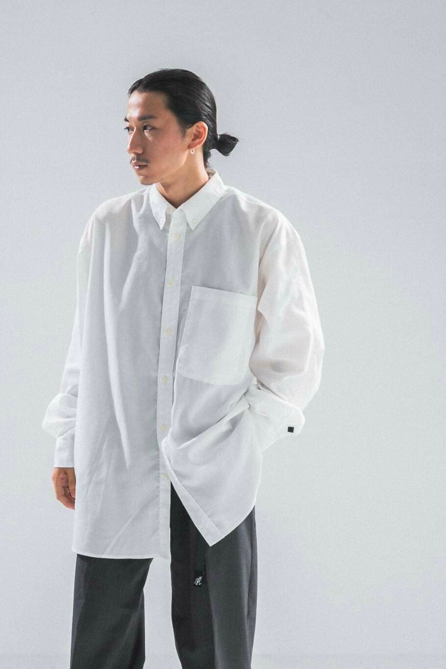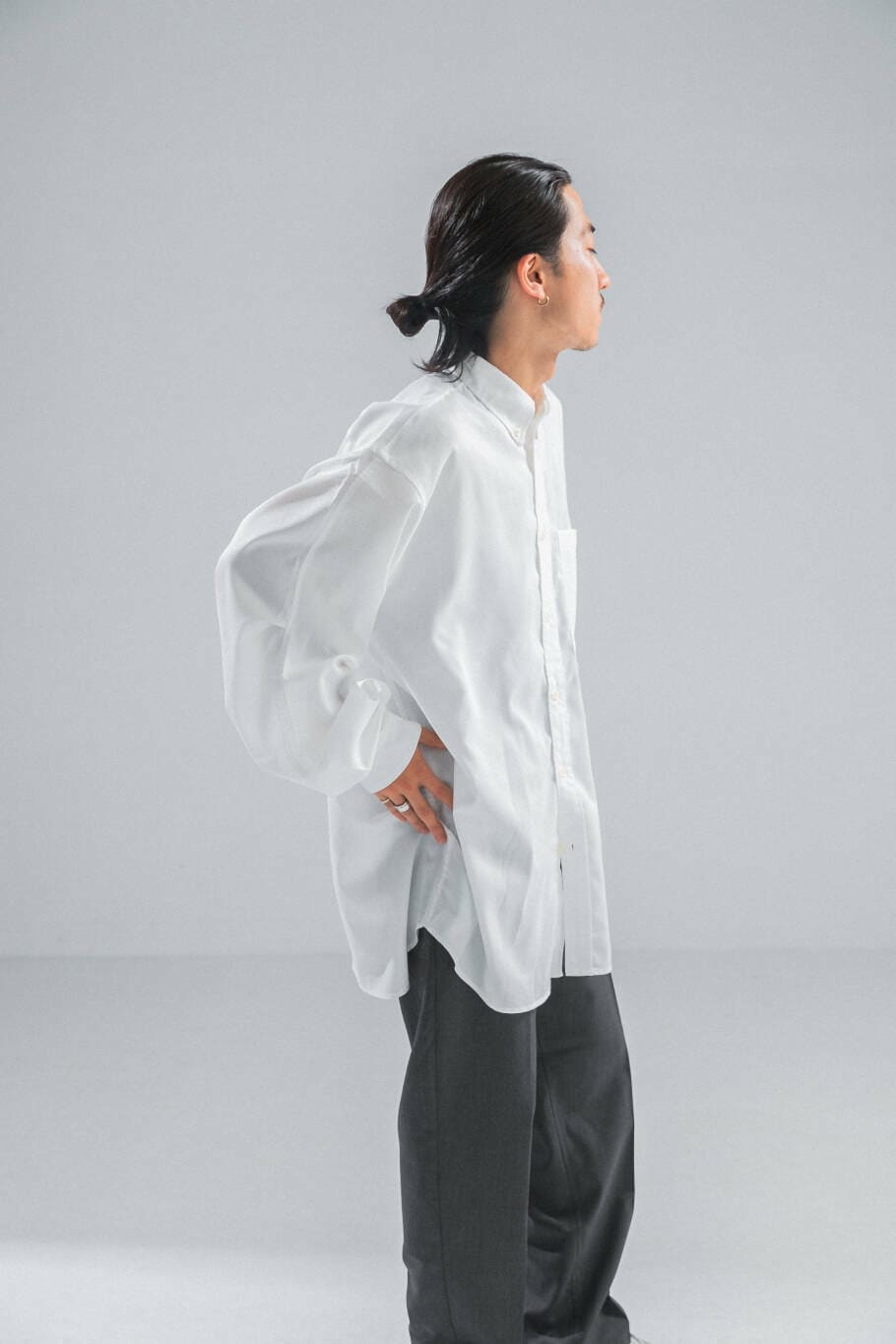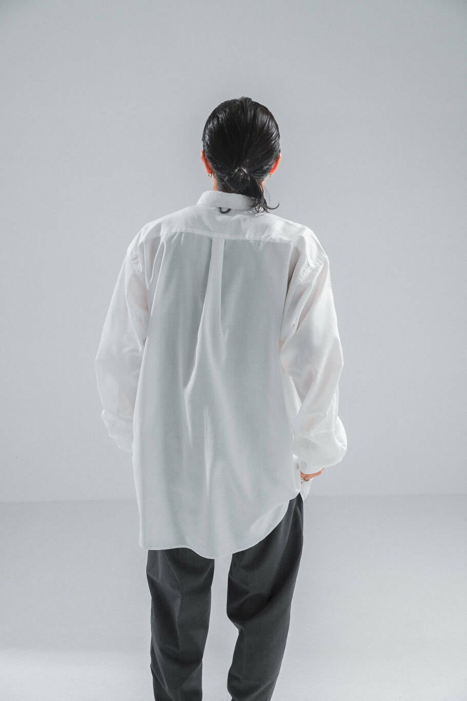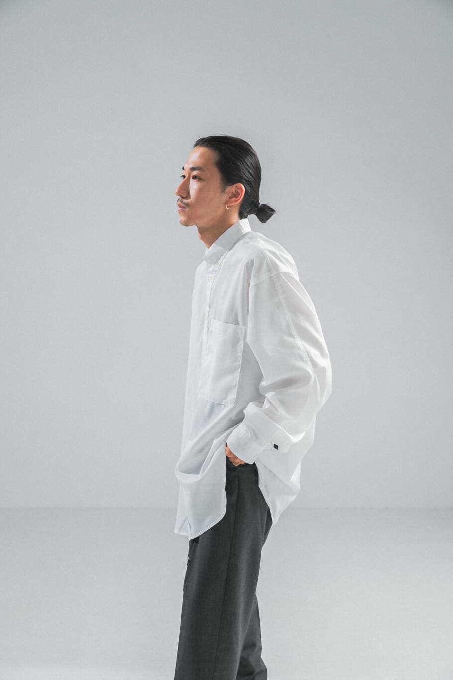 透け感もあるので、インナーにはTシャツはもちろんタンクトップで前ボタン少し開けて袖を捲れば、まだまだ夏らしいスタイルでも着て頂けます。