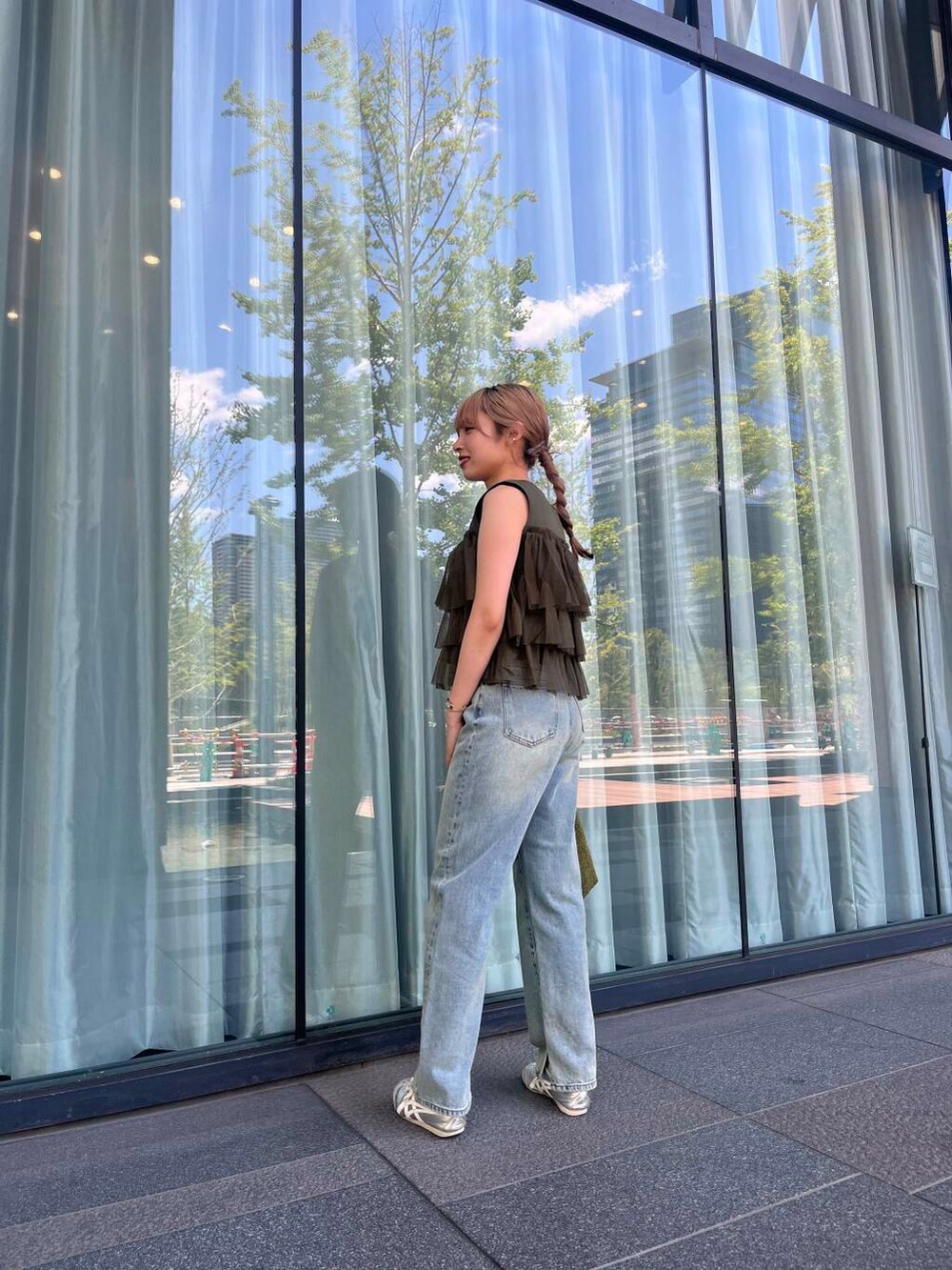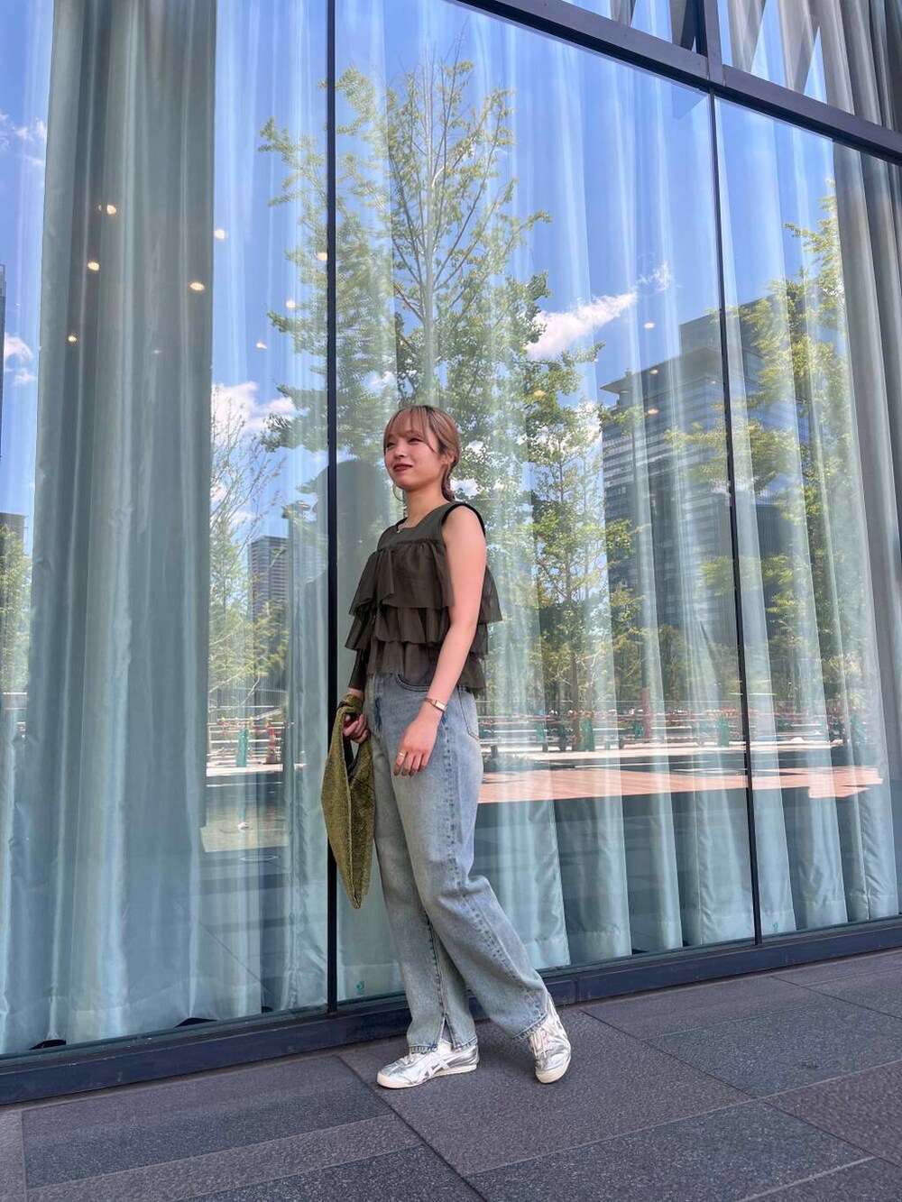 カーキのお色味だとカジュアルにも着こなせます!