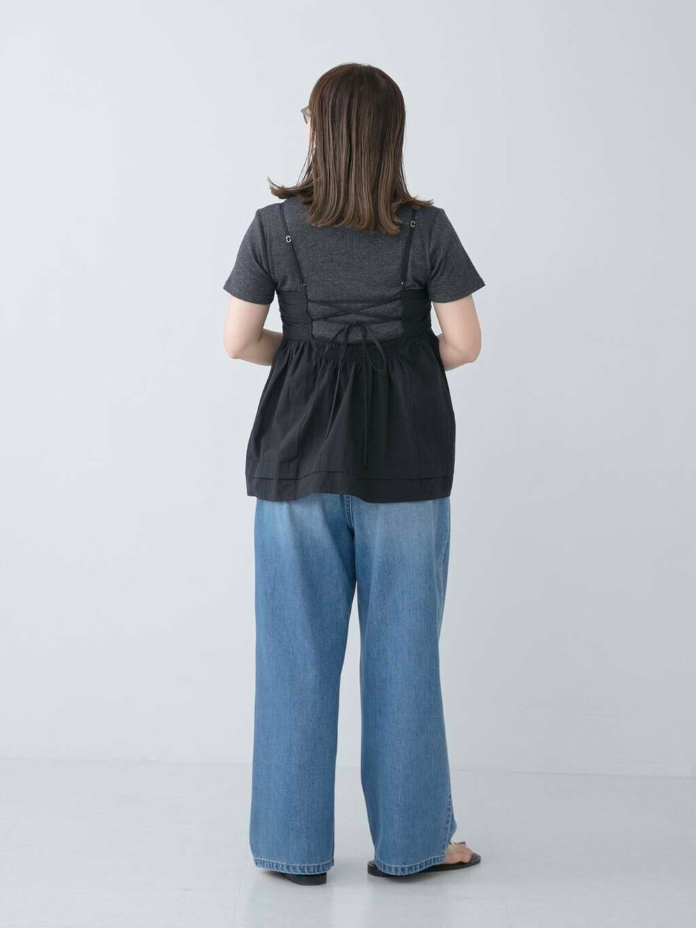 肩紐の調整もできるので身長や体型を選ばず着られますよ◎
