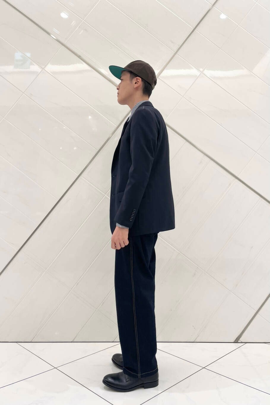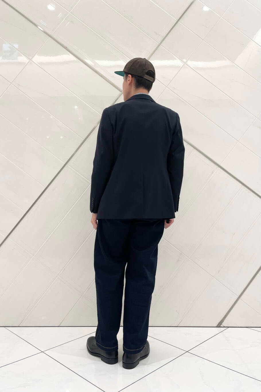 Life Style Tailor のウォッシャブルストレッチジャケットを着用したアメトラスタイルです。