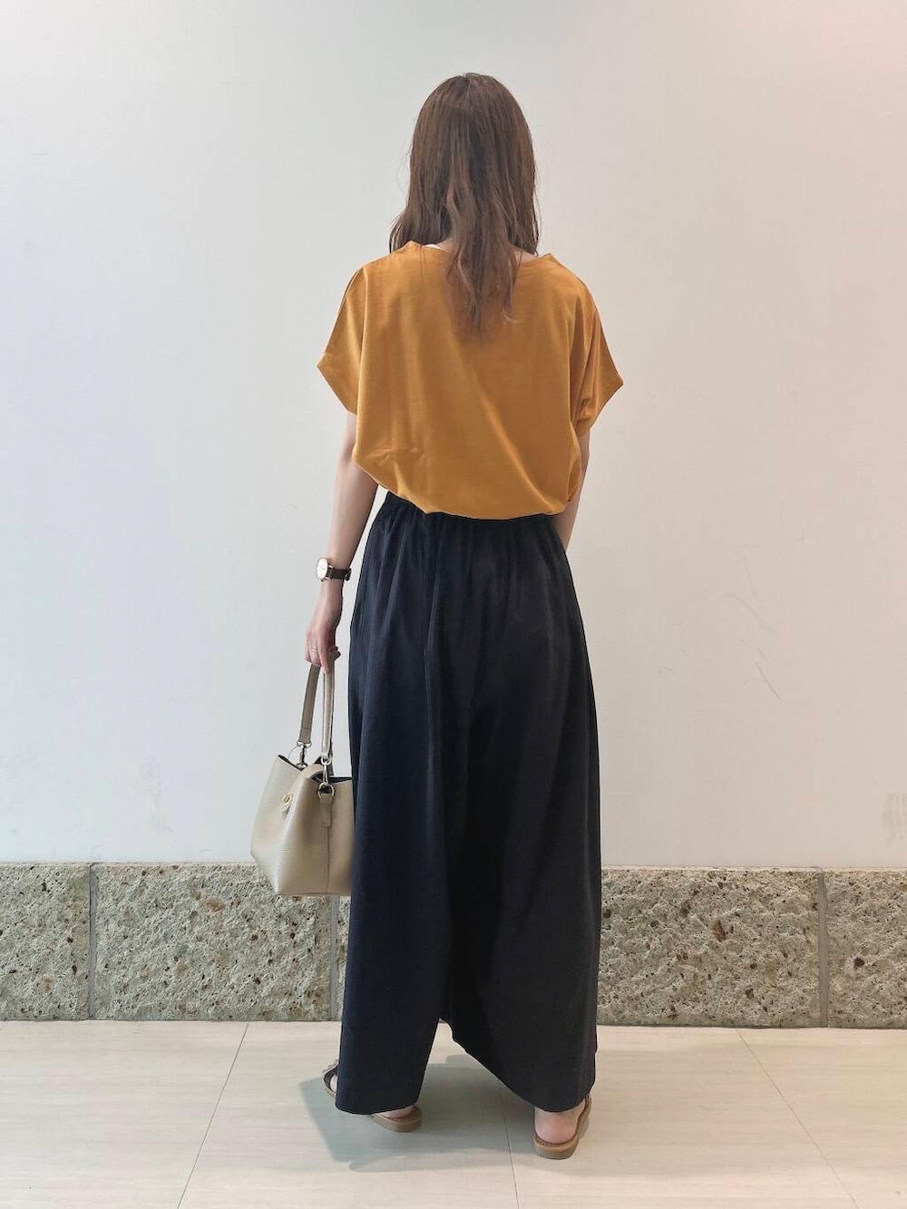 ウエストはゆるめの作りですが、紐で調節ができるので