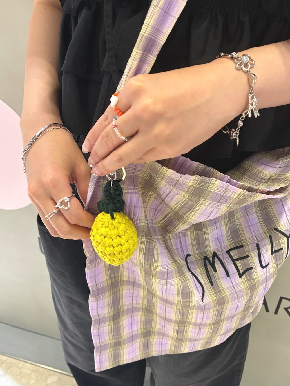 人気のプリントショルダーバッグにキーチェーンをつけました🍋