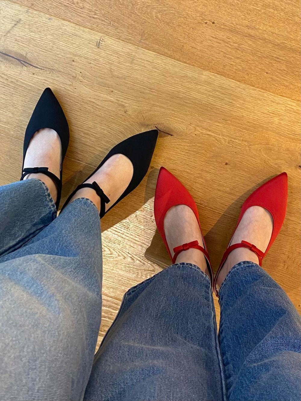 今回はシンプルにTシャツとデニムで合わせて、新作のリボン付きミュールで組み合わせました☺️