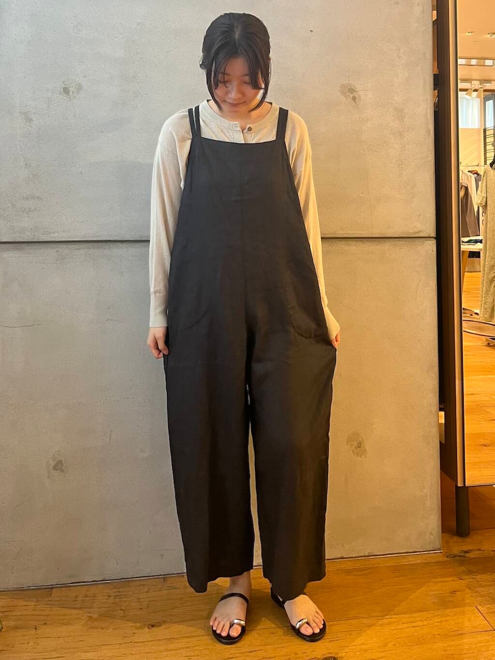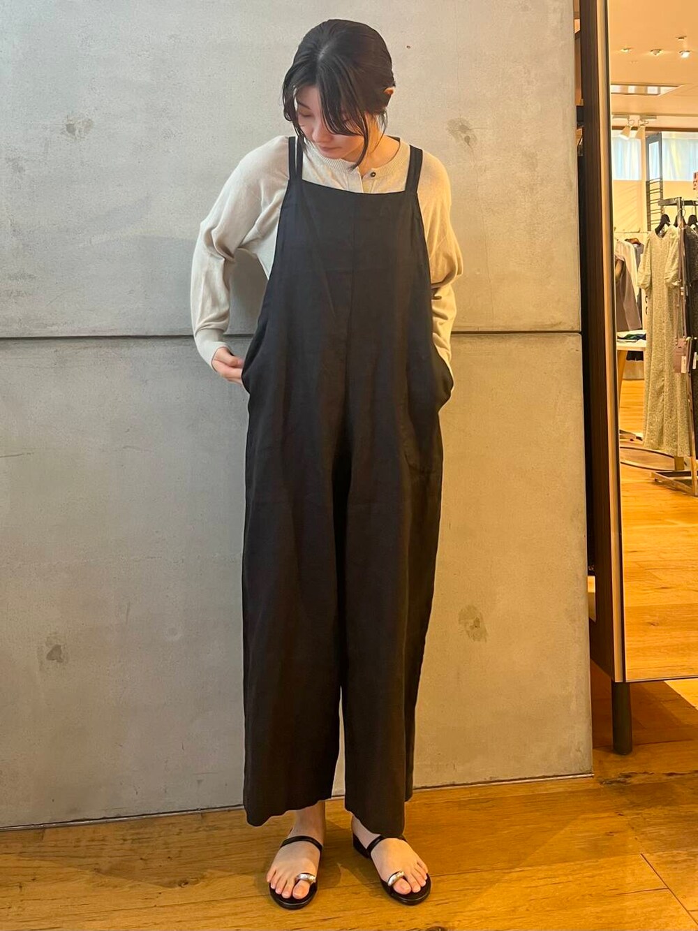 このリネンサロペットが暑いこの夏でも通気性が良く涼しく着れます♪