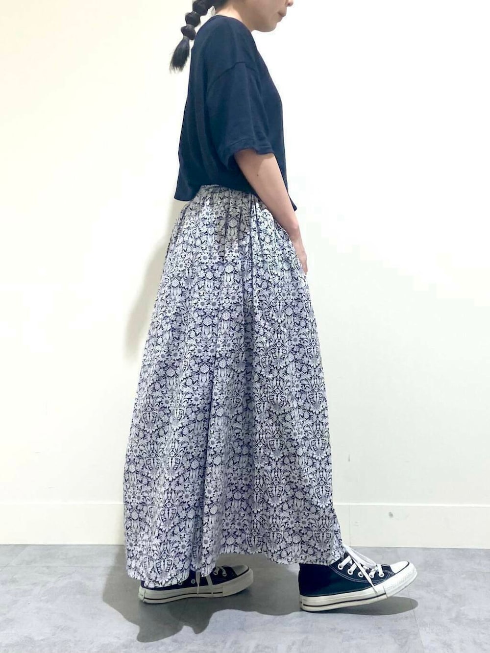 リバティ好きにはたまらない、繊細で上品な柄がプリントされたスカートです。