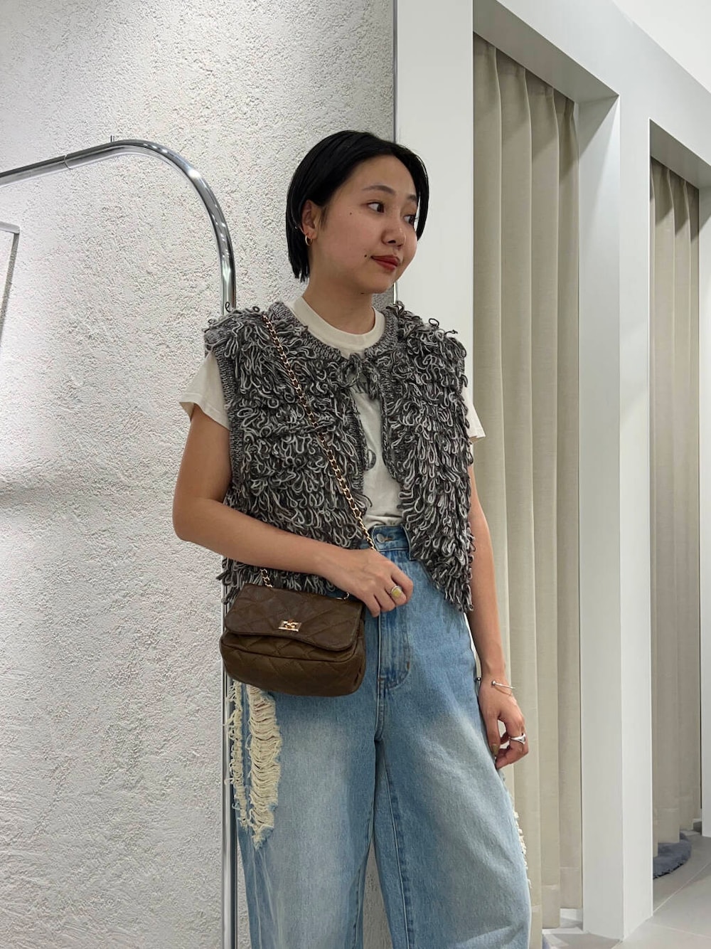 ニットベストは今の時期はノースリーブや半袖に重ねてすぐにお使いいただけます◎