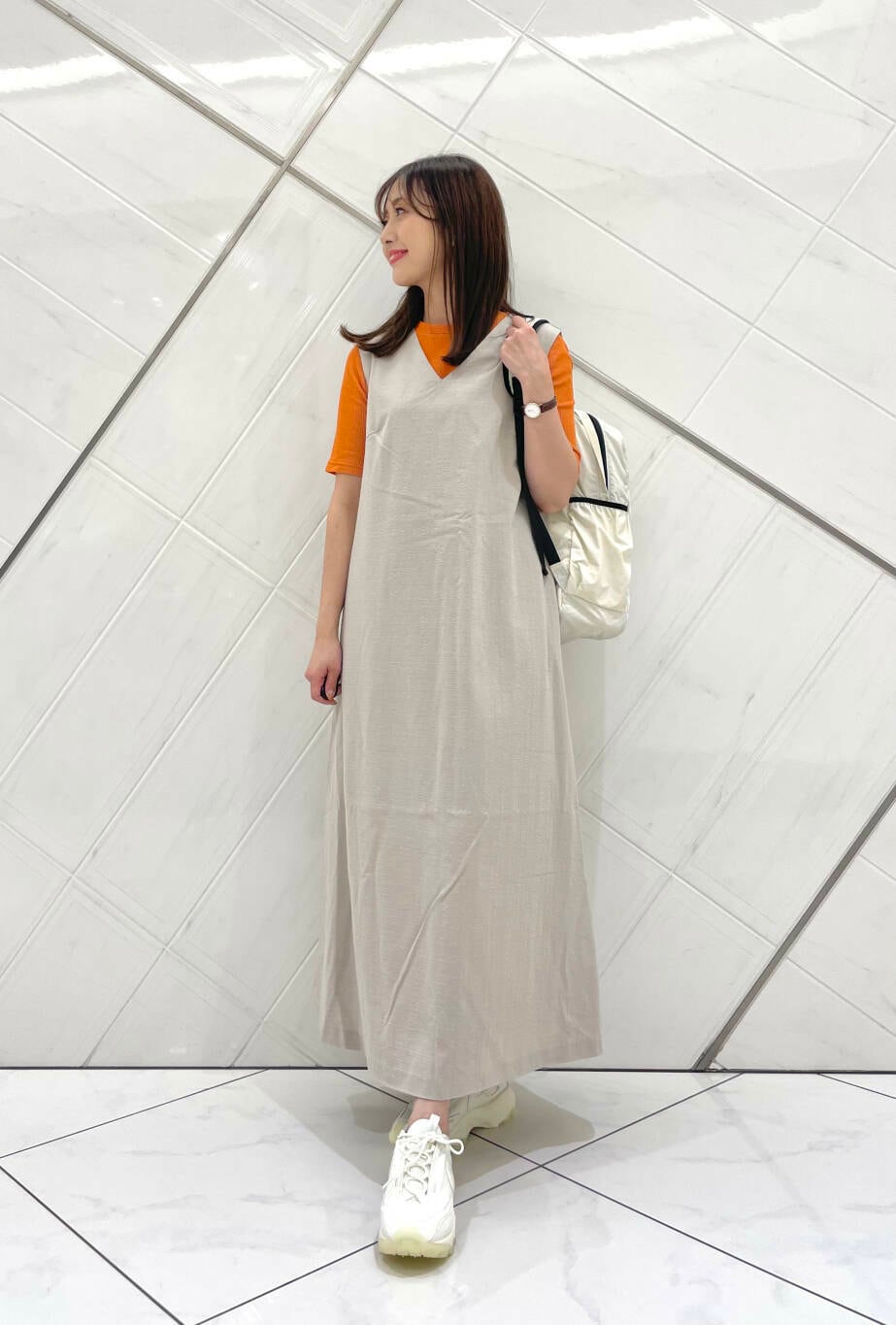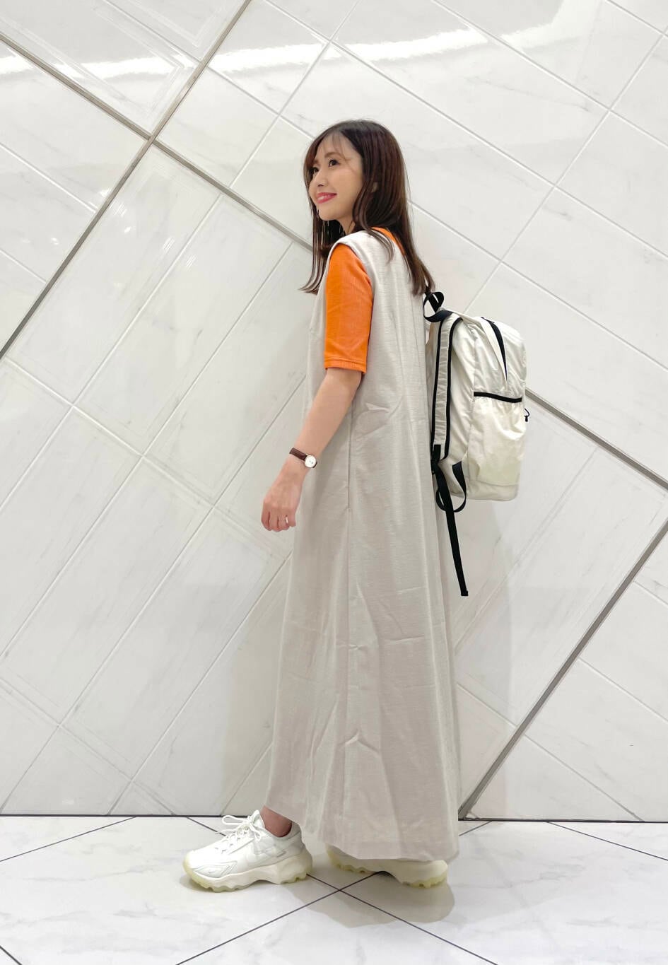 ノースリーブワンピースに入れるとカジュアルな印象になり、雰囲気もがらっと変わります(^^)