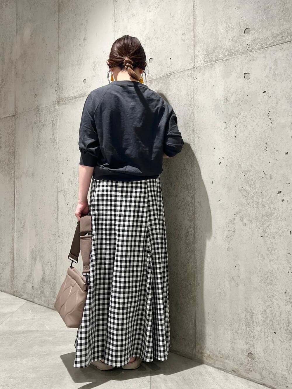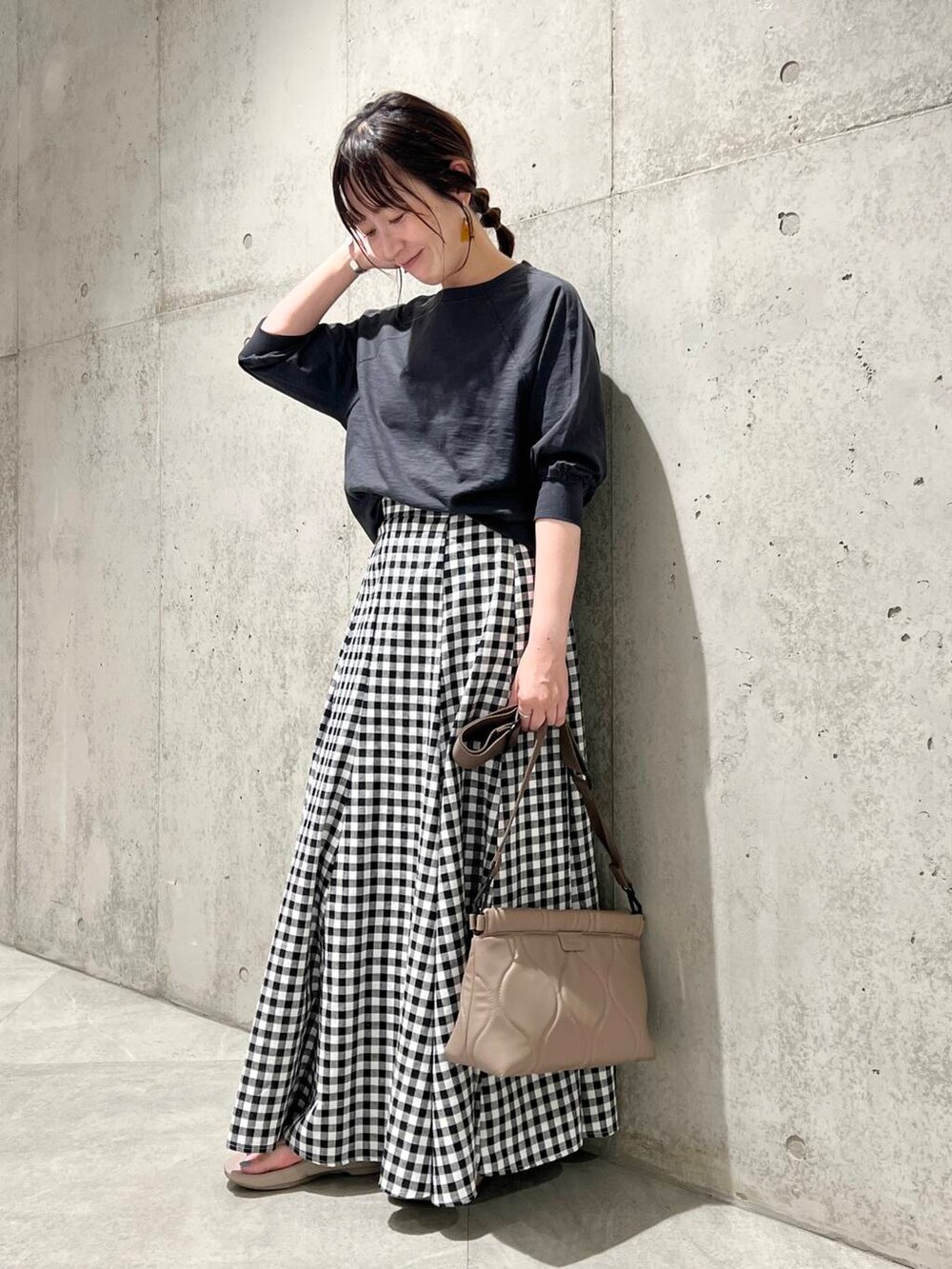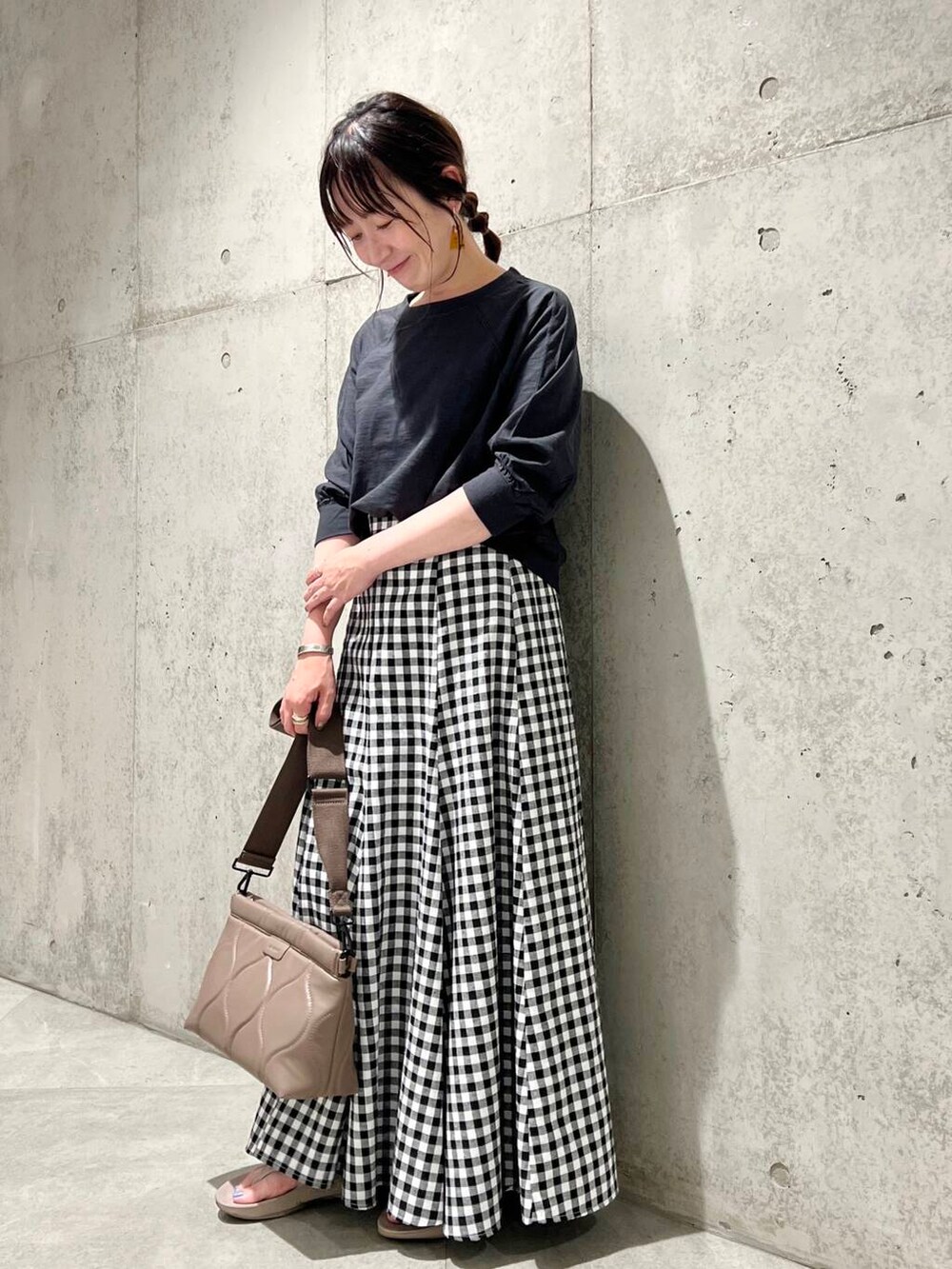 今回は、女性らしいマーメイドシルエットのギンガムチェックをポイントにした、大人カジュアルコーディネート。