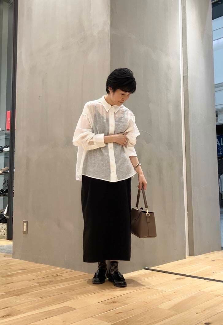 ベーシックなIラインのスカートなので合わせ次第で綺麗目にもカジュアルにも。