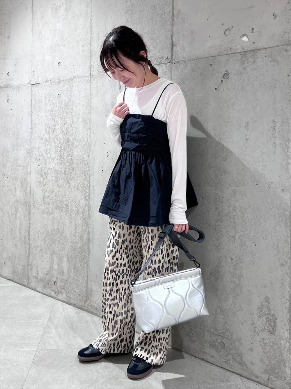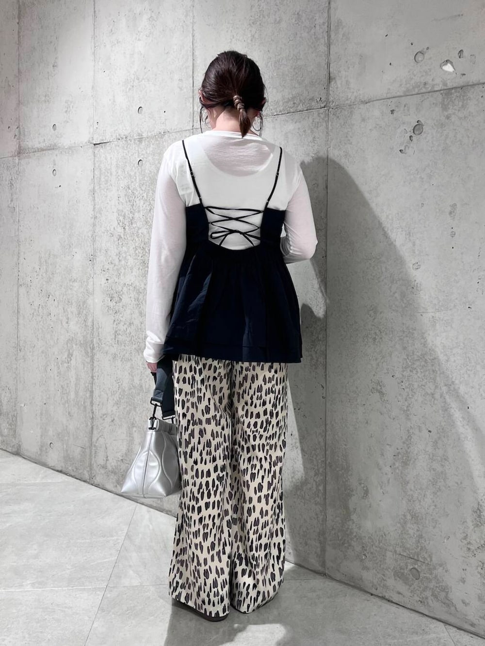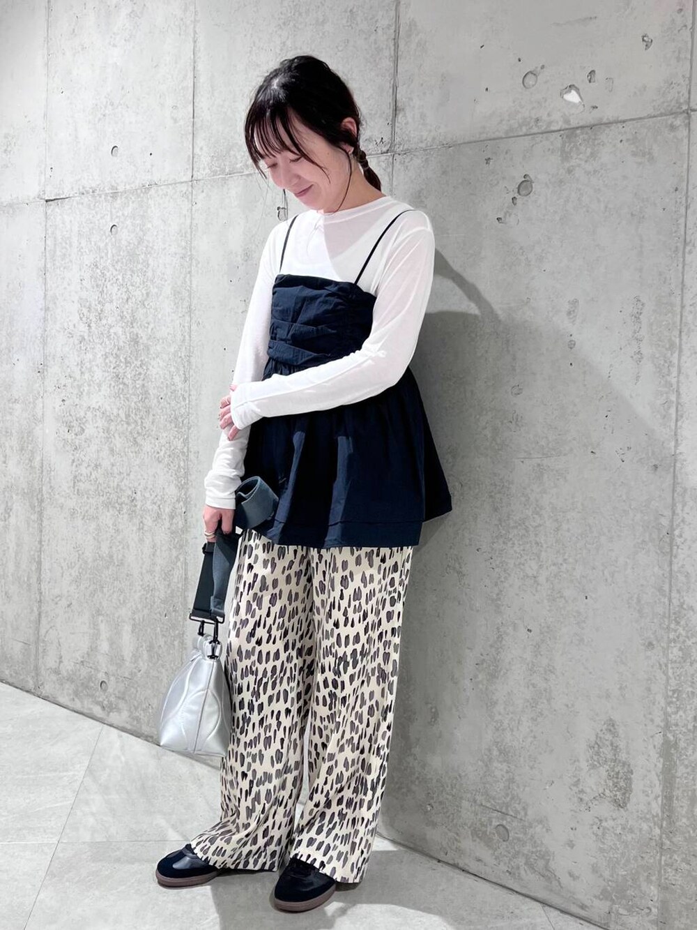 パンツは、落ち着いたカラーのプリントで、ワンピースとのレイヤードなど着回しのきく1着です。