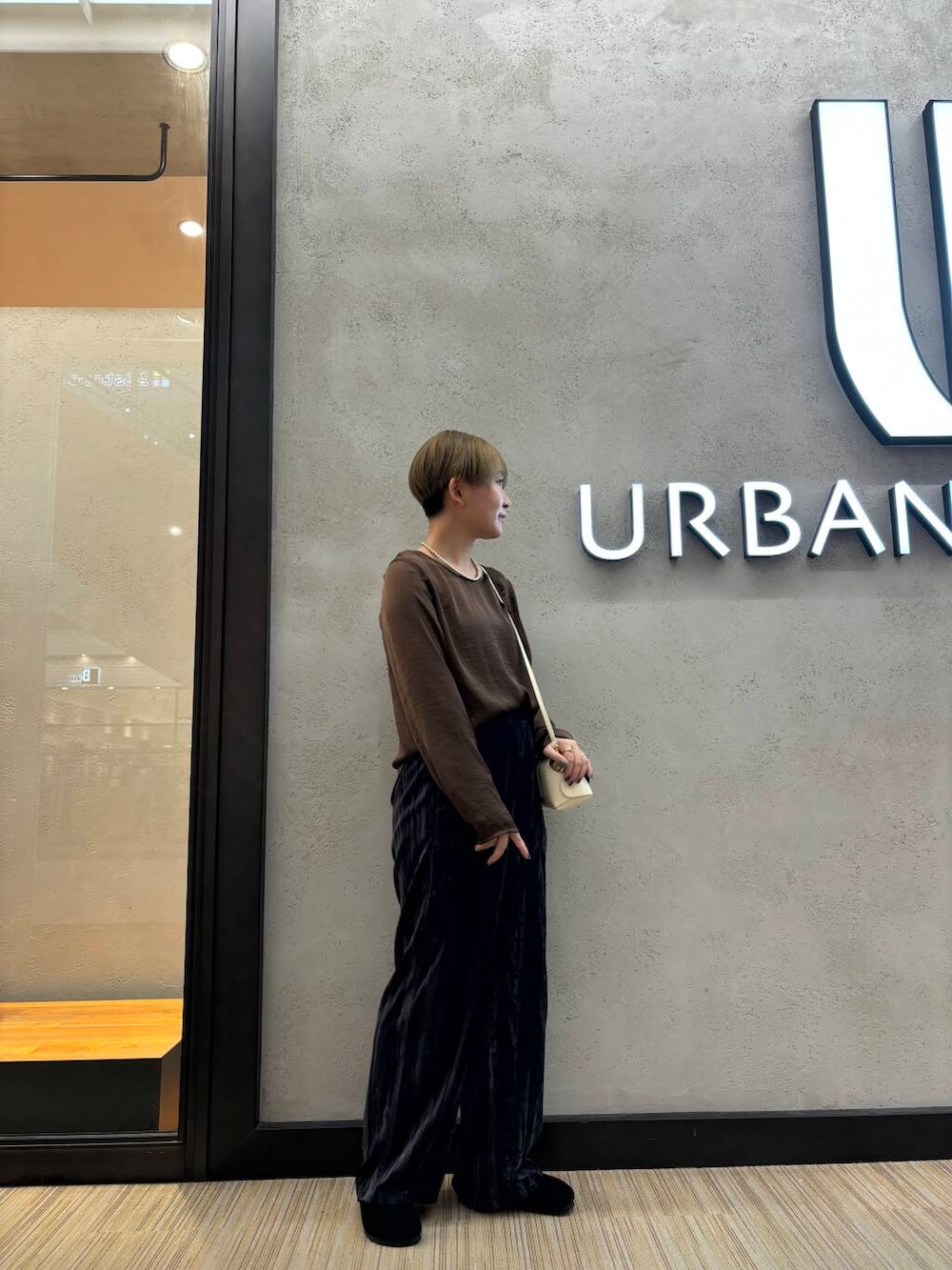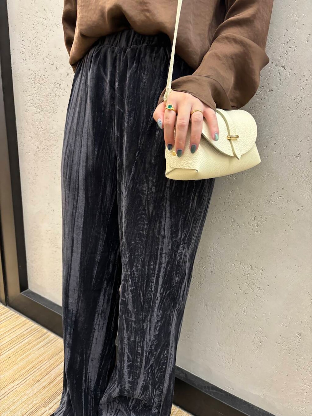 ベロアパンツは157cmで少し裾がたまるぐらいです🙆♀️