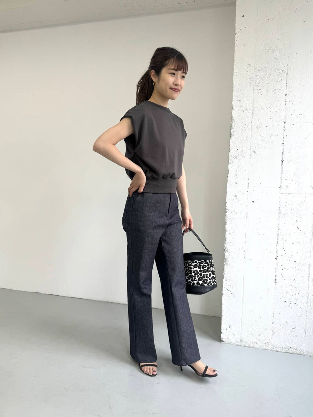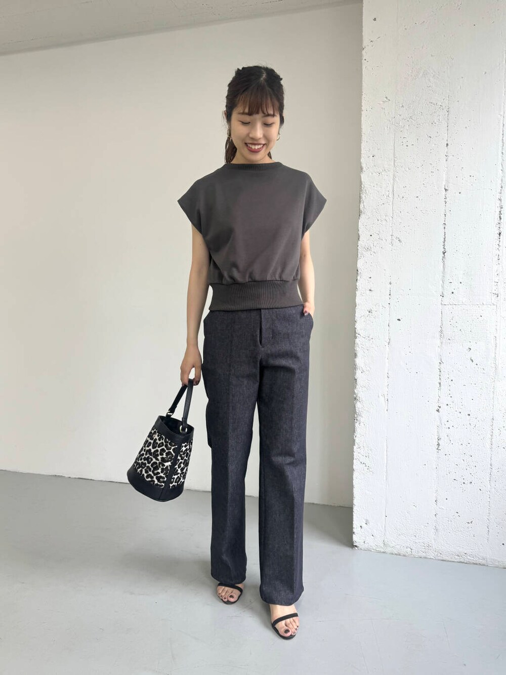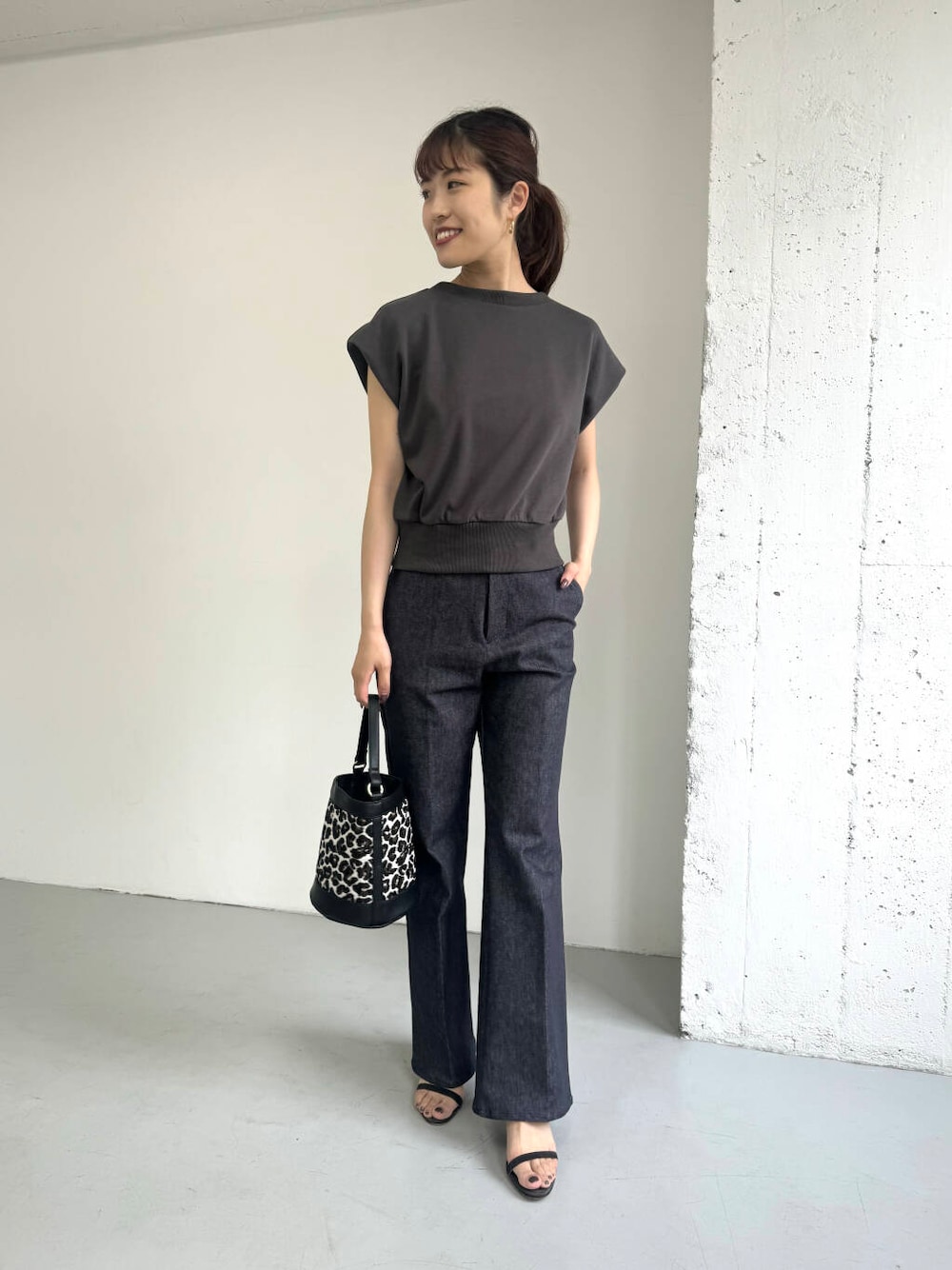 コンパクトな着丈なので、フレアスカートやカーゴパンツなど
