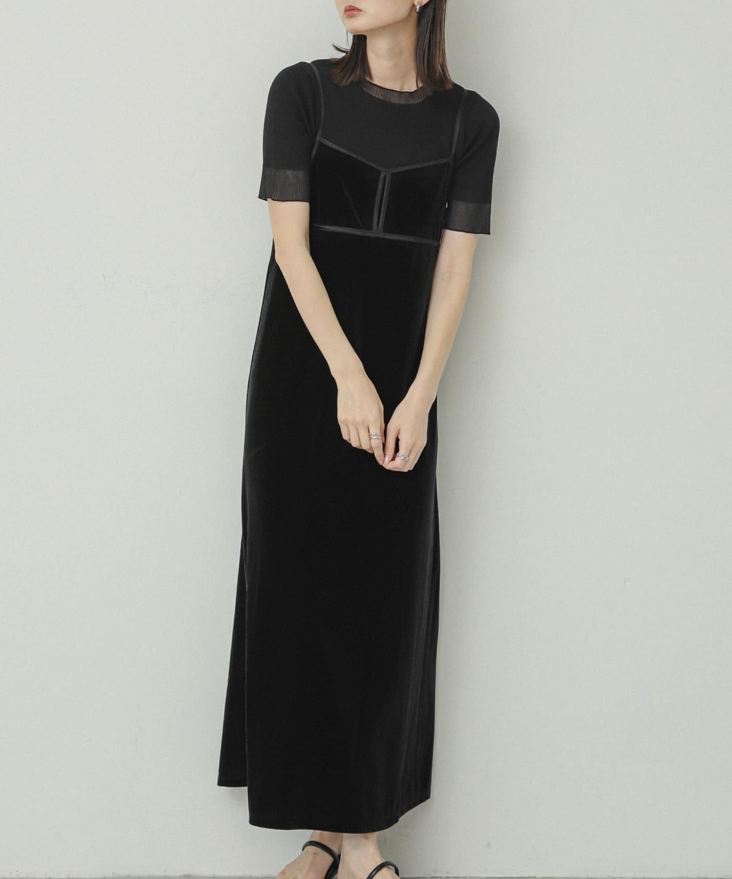 SENSE OF PLACEフロントスリットベロアキャミワンピース- カラー: