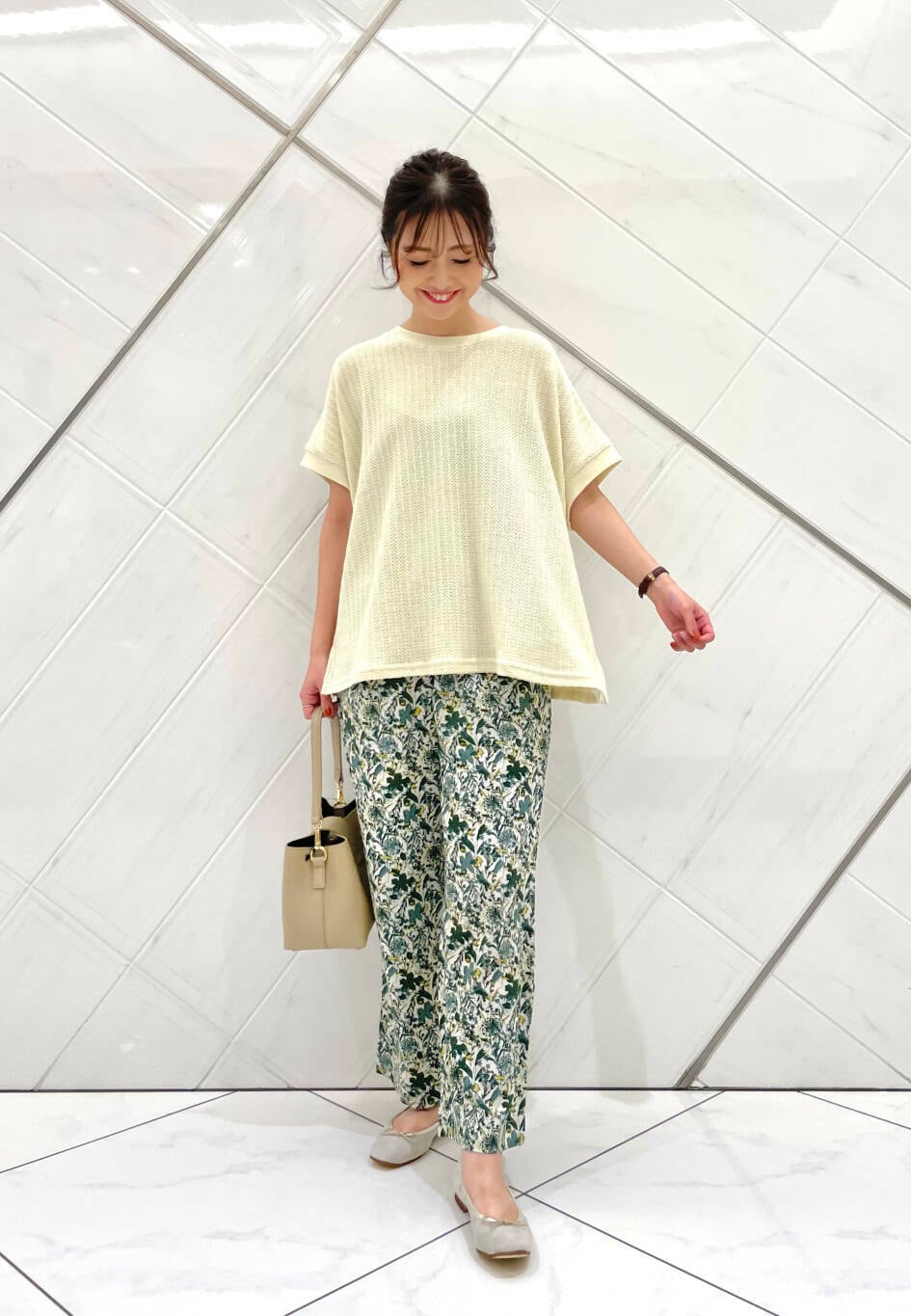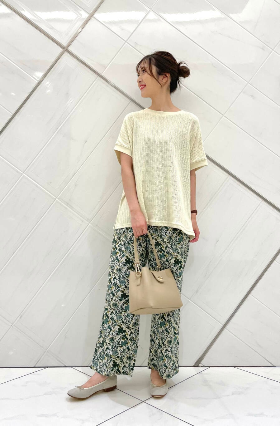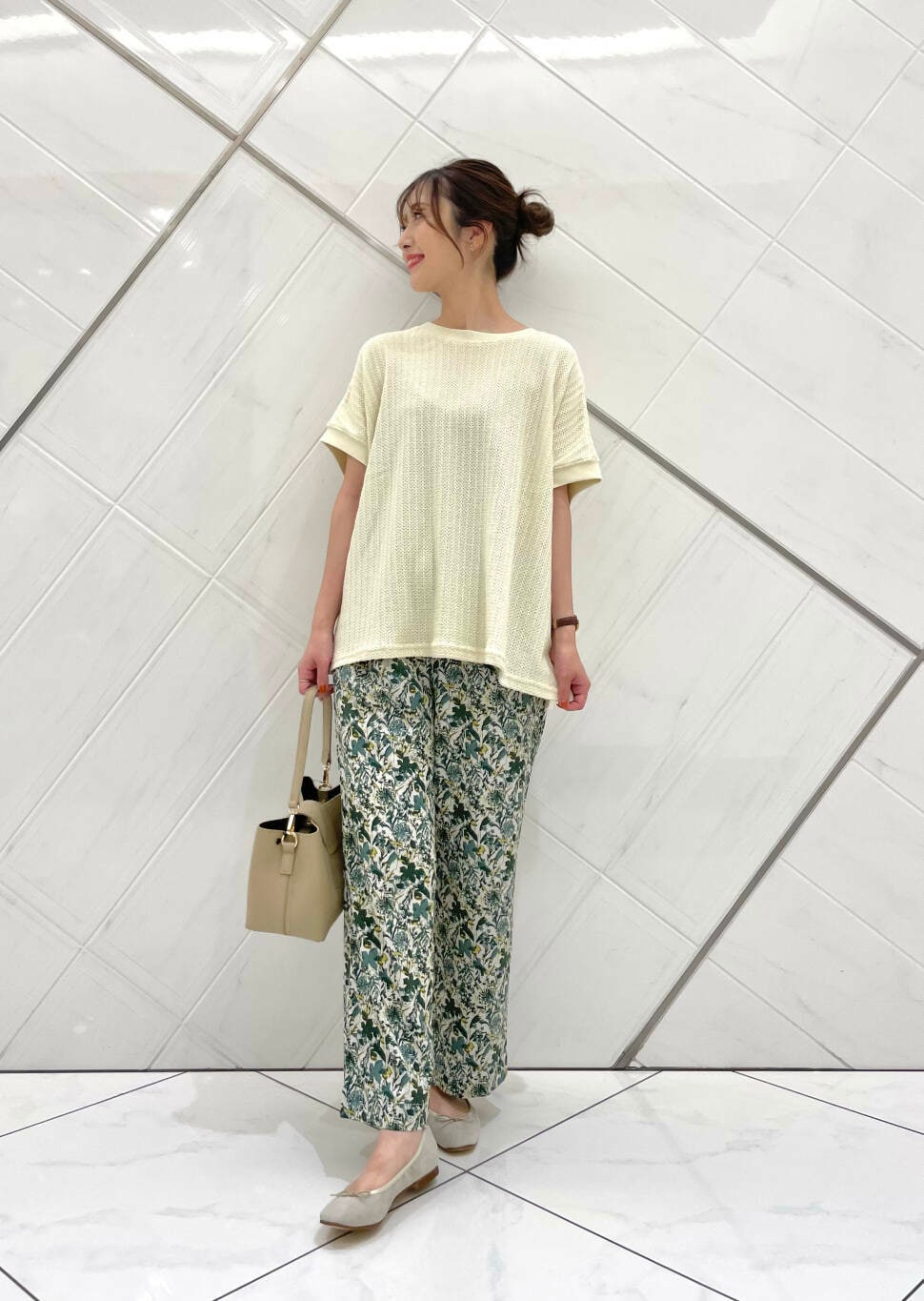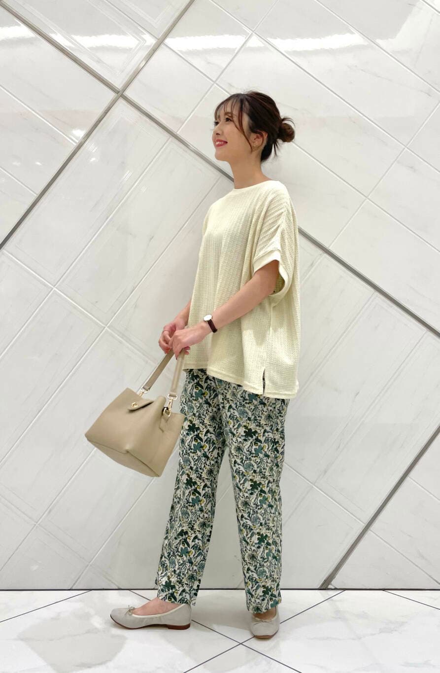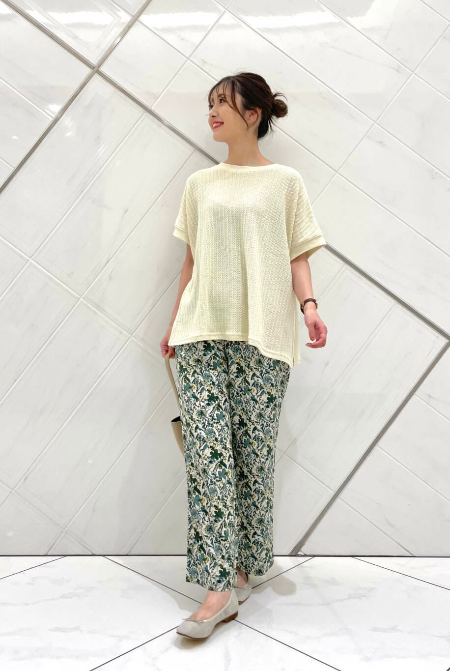ボトムはシワになりにくく、ひんやりとしておりストレスフリーな着心地です。
