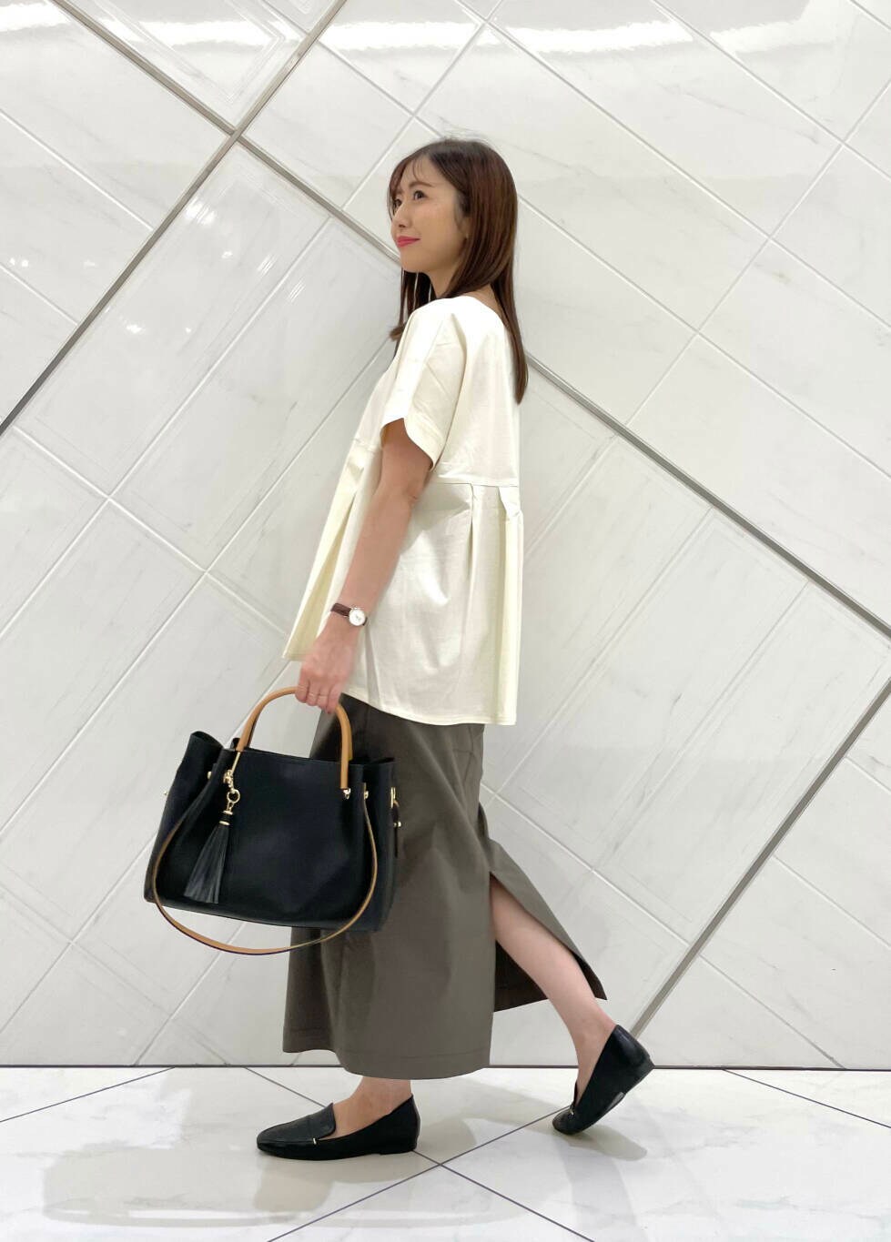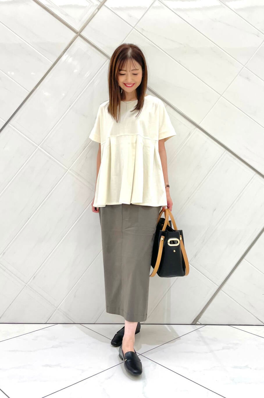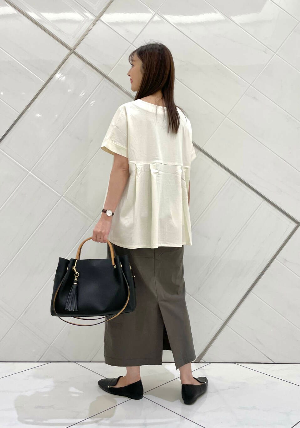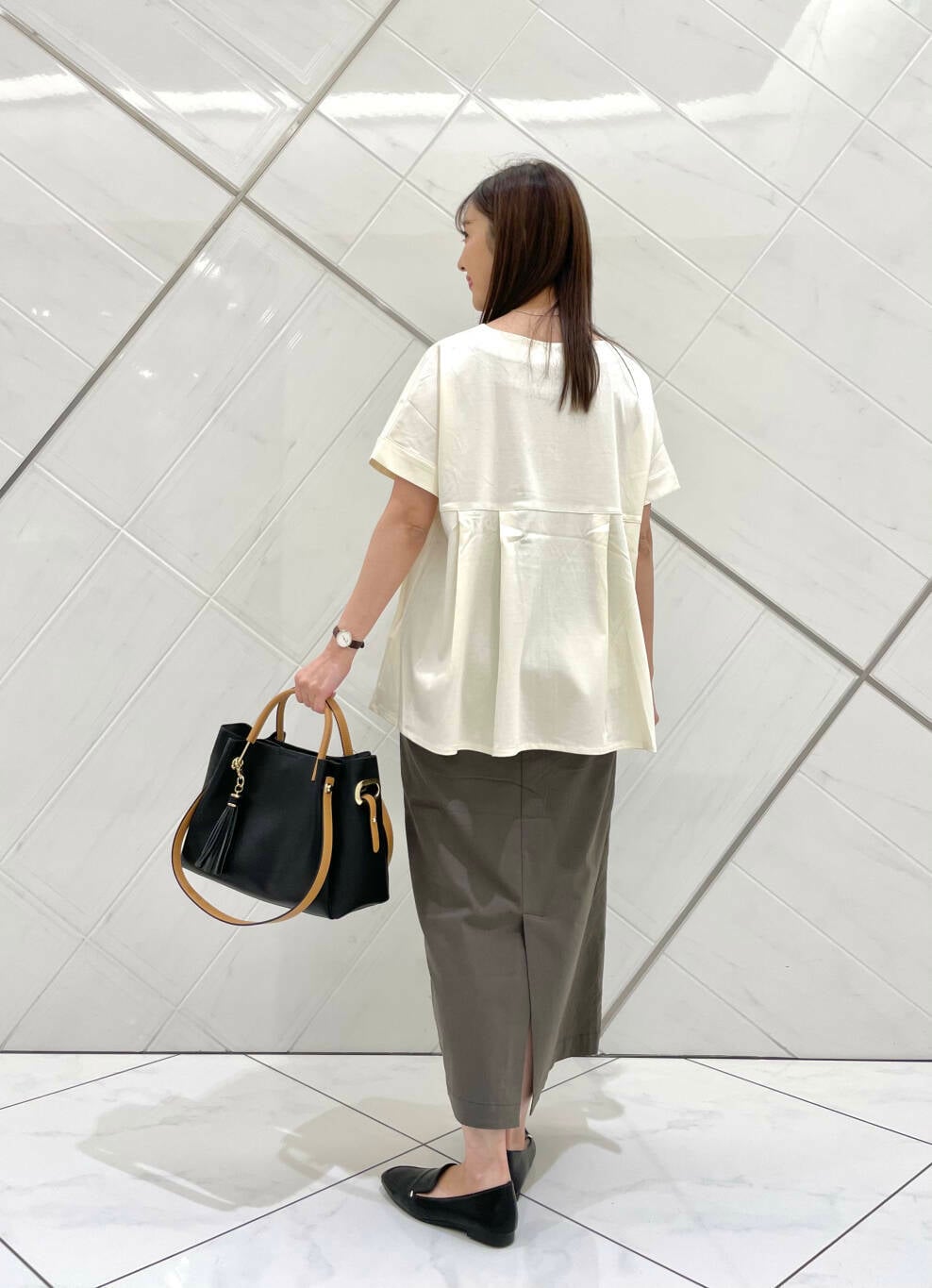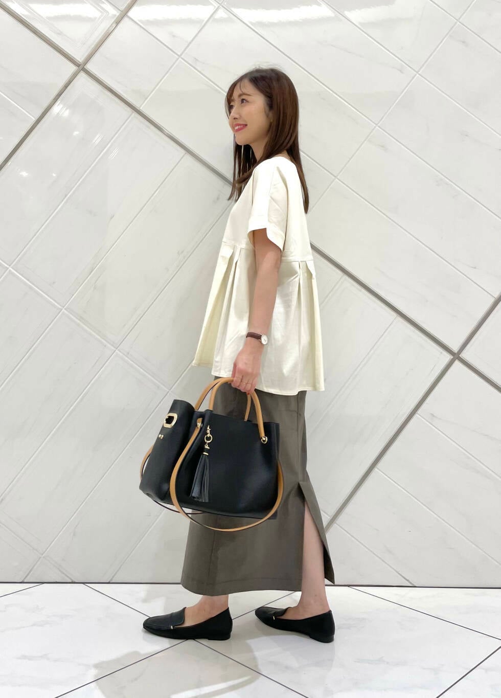 身幅も広めなのでリラックス感があり、パンツスタイルやタイトスカートとの組み合わせがおすすめです(^^)