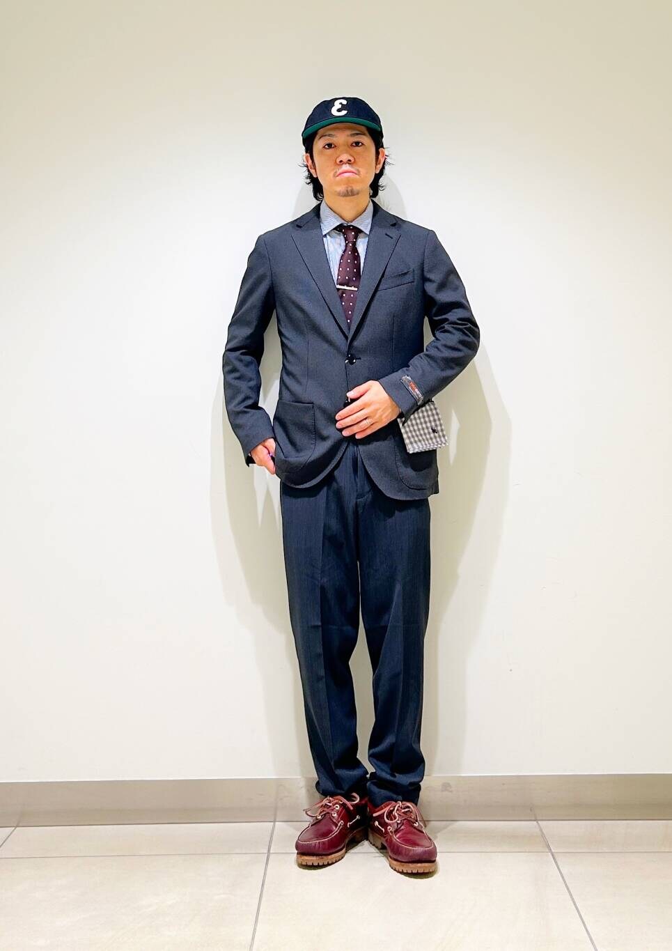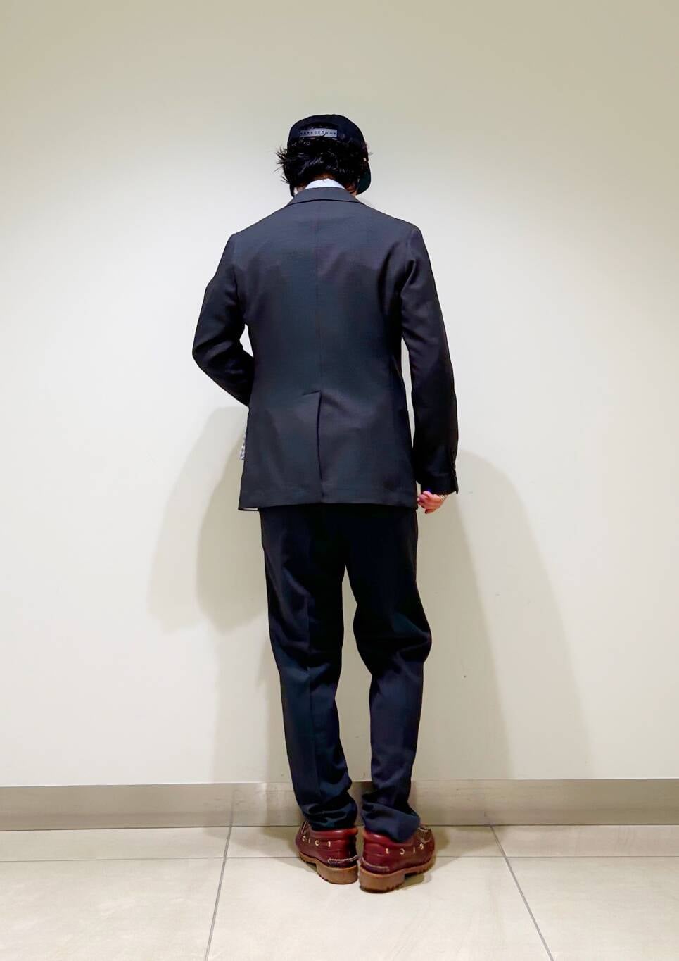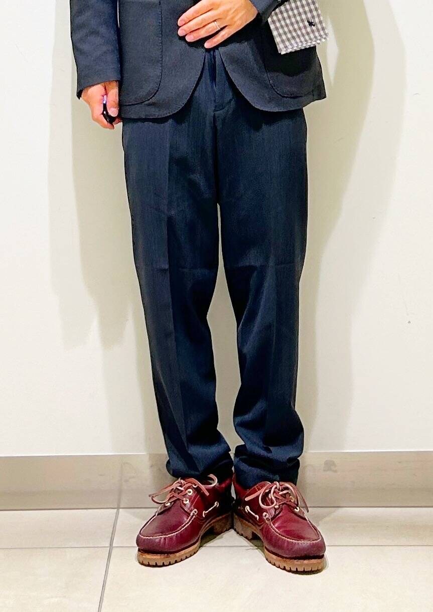 今回はLIFE STYLE TAILOR TRABESTグレンチェックジャケットとカルゼストレッチスラックスを使用したコーディネート。