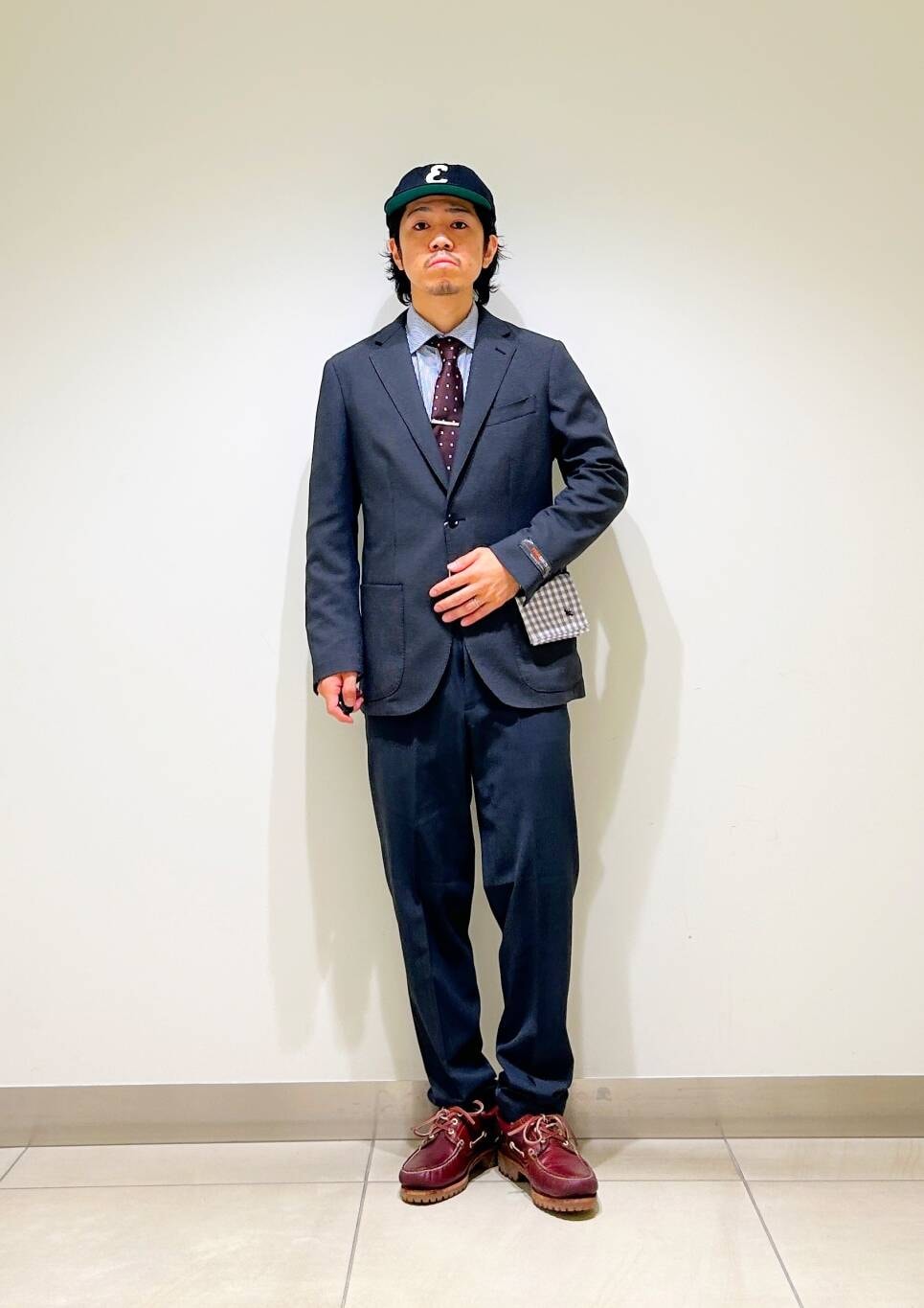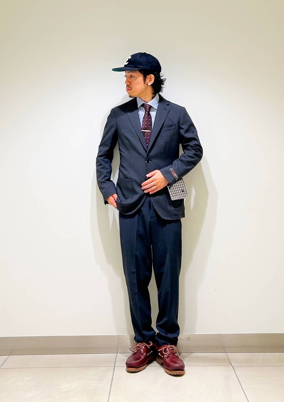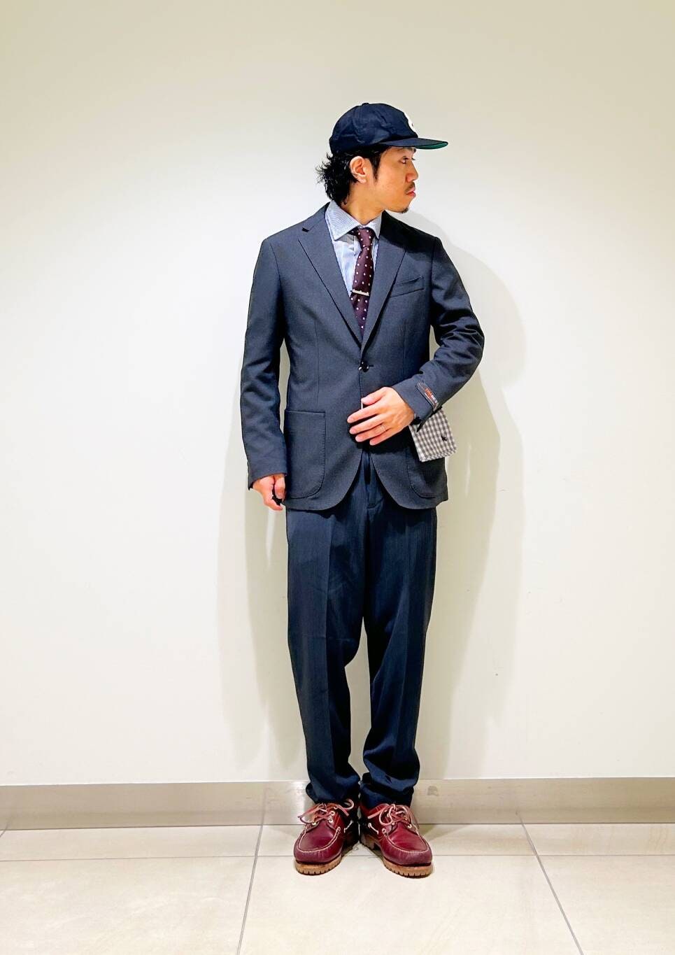 今回はLIFE STYLE TAILOR TRABESTグレンチェックジャケットとカルゼストレッチスラックスを使用したコーディネート。