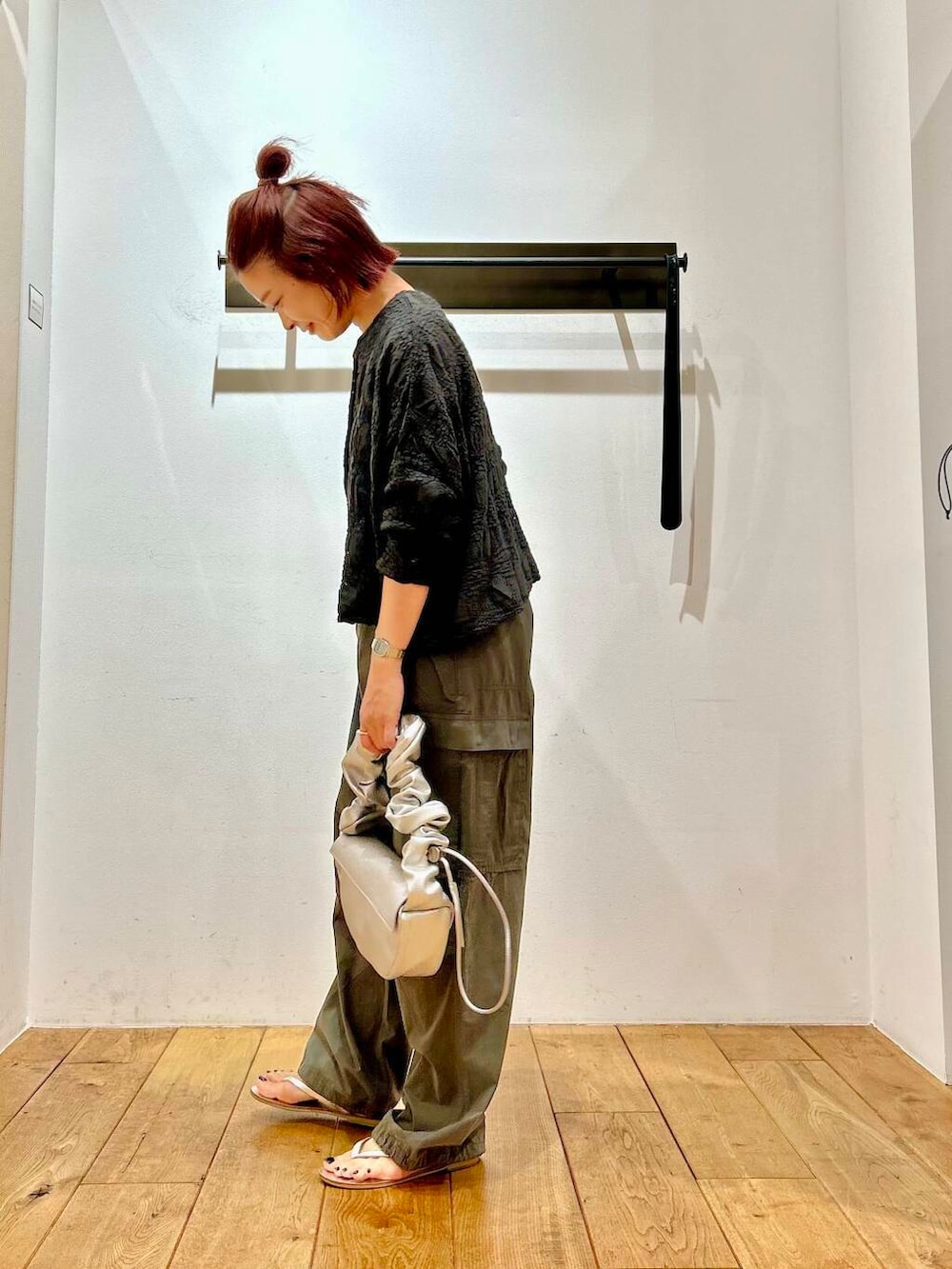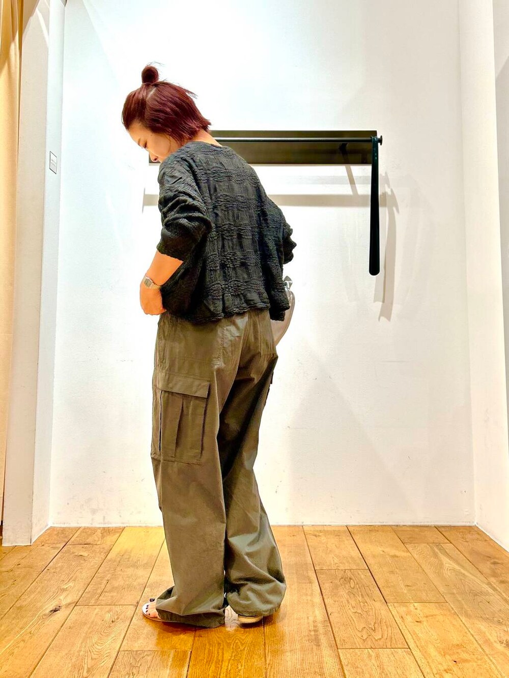 メンズライクなパラシュートパンツに、mizuiroの新作大人カーデを合わせて、少しラフさを抑えたスタイリングにしてみました!