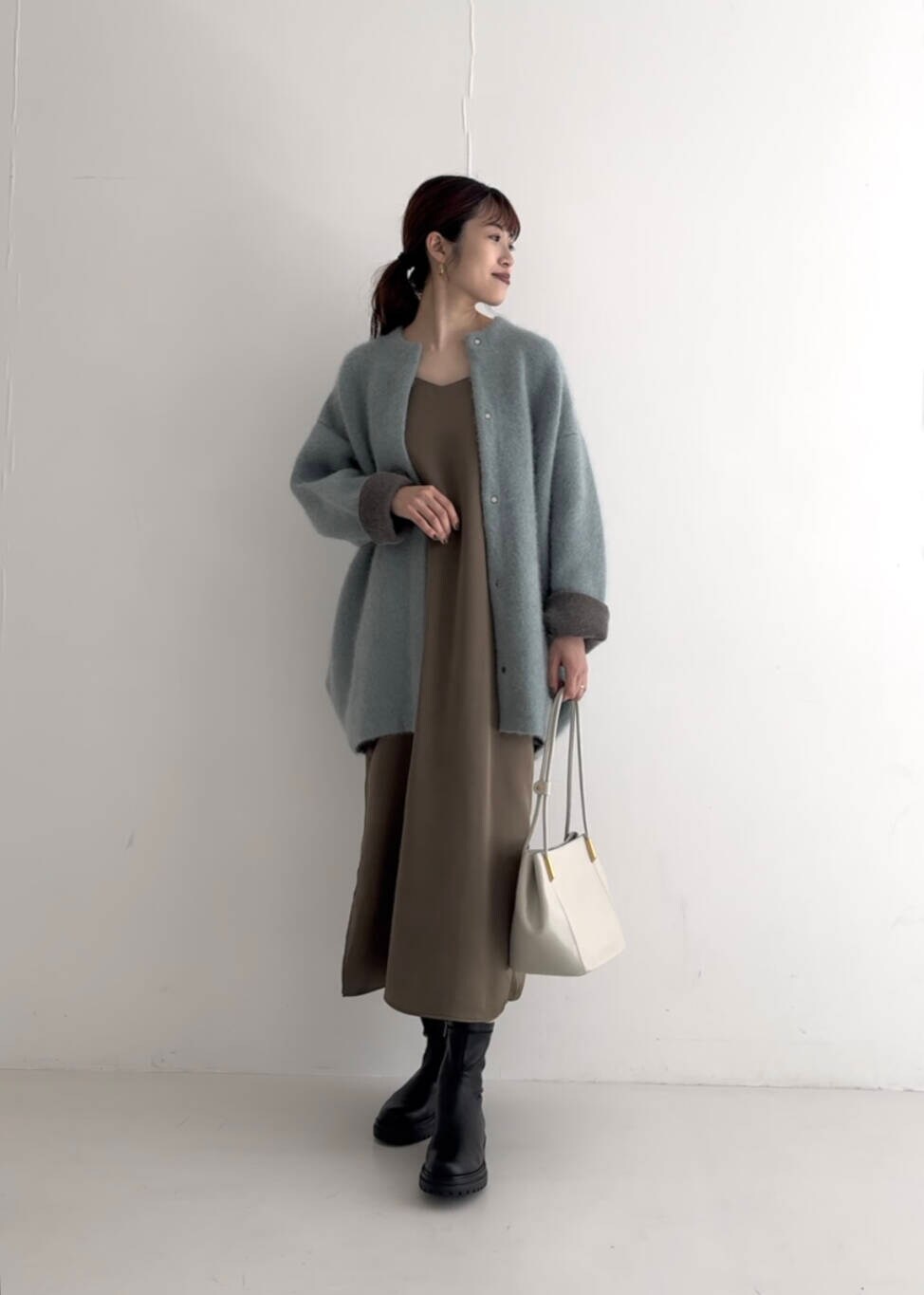 素材感を楽しむコーディネートに仕上げてみました。