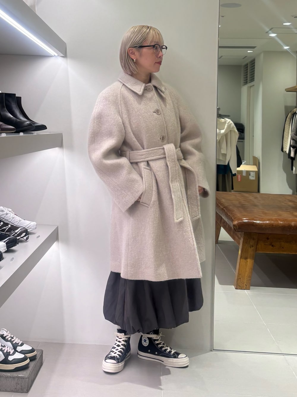 ボリューム感はしっかり出るので、華奢なトップスに合わせて着るとバランスもとりやすいです。