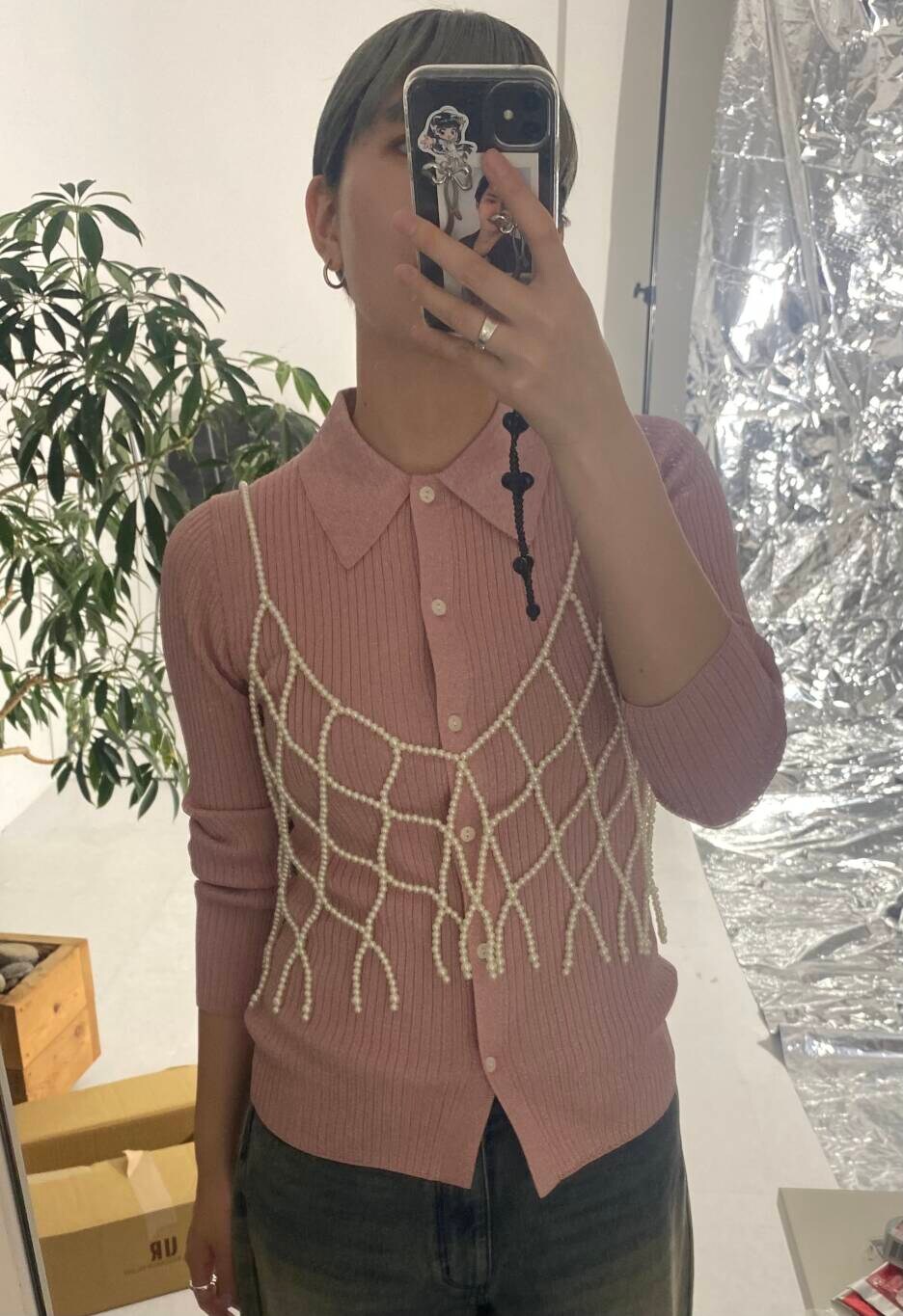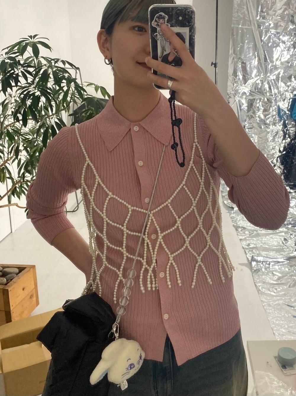 パールのビスチェもプラスワンで合わせると、一気にこなれた雰囲気になります♡