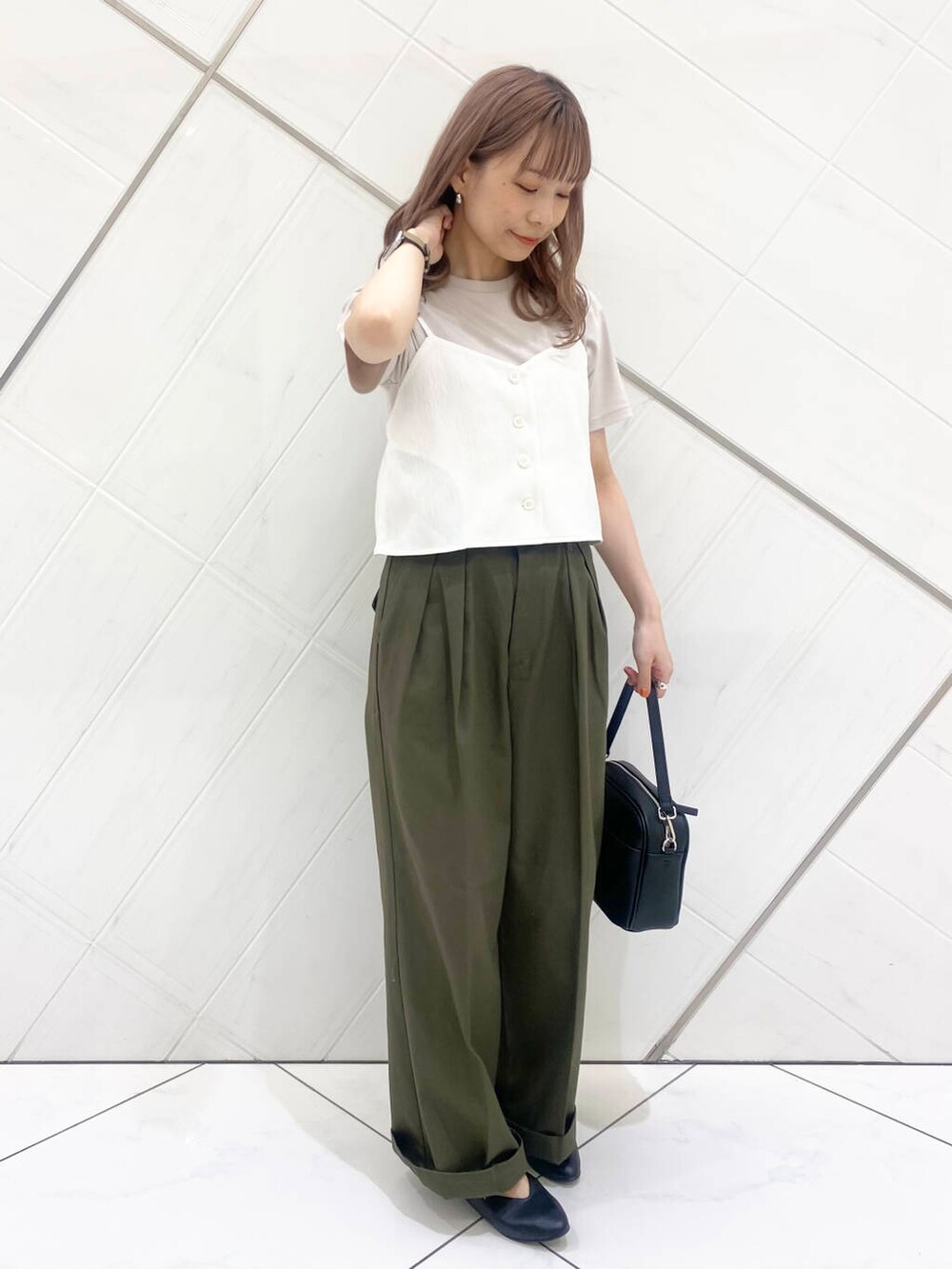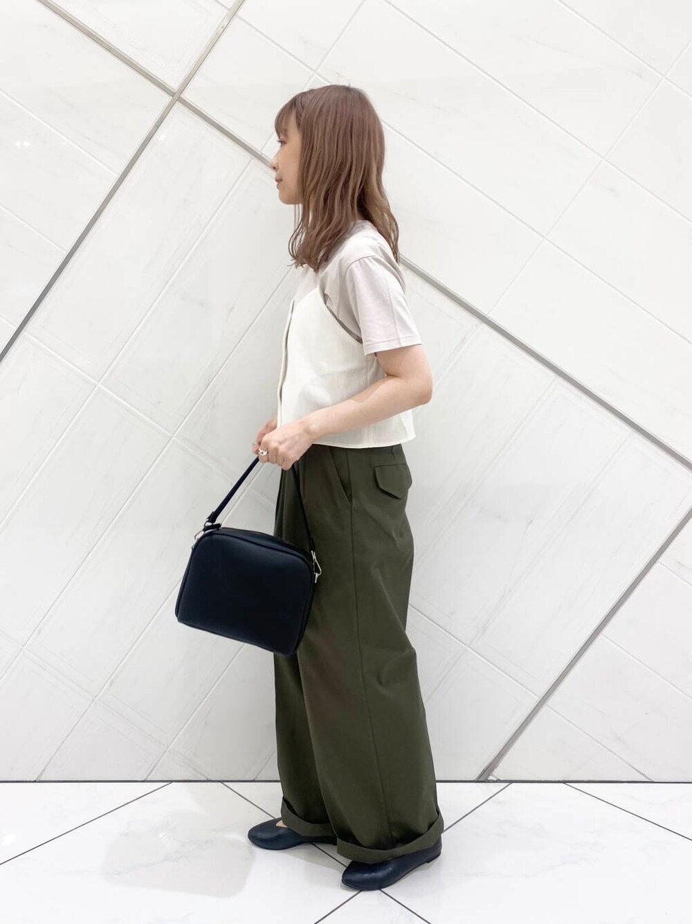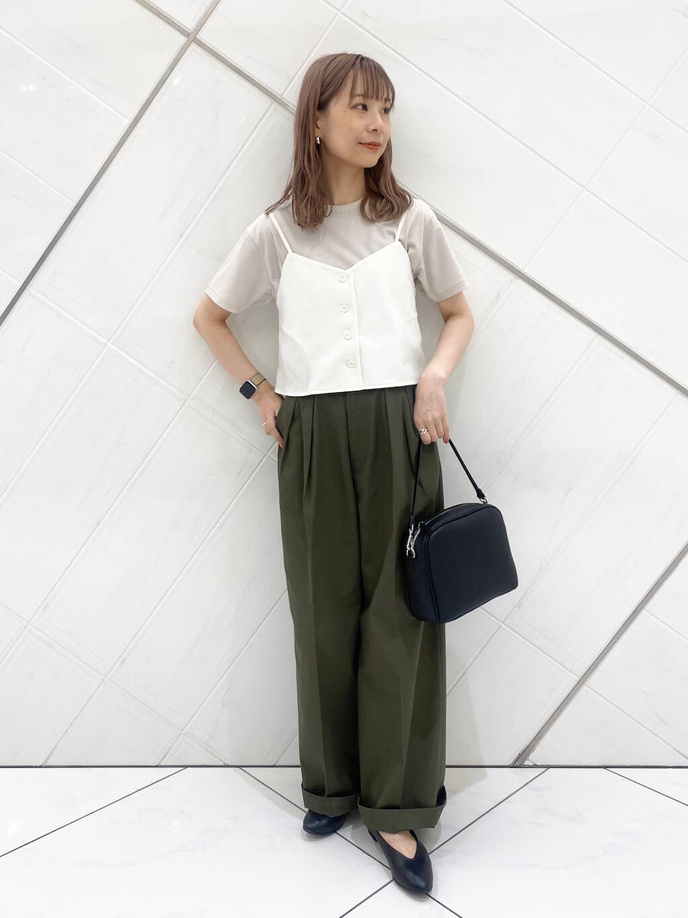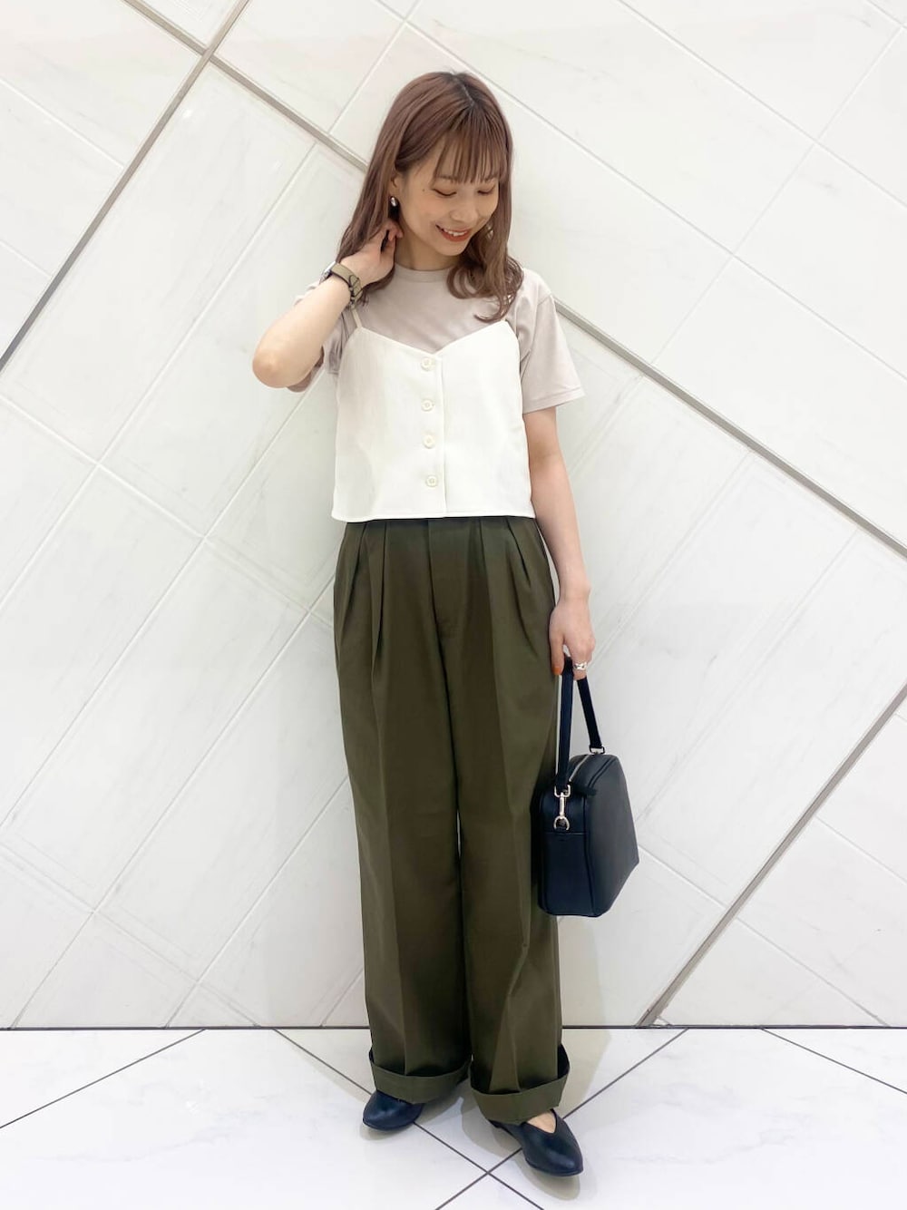 私にはサイズ感が大きかったのですが、裾をひと折して、ウエストをベルトでしっかり締めれば