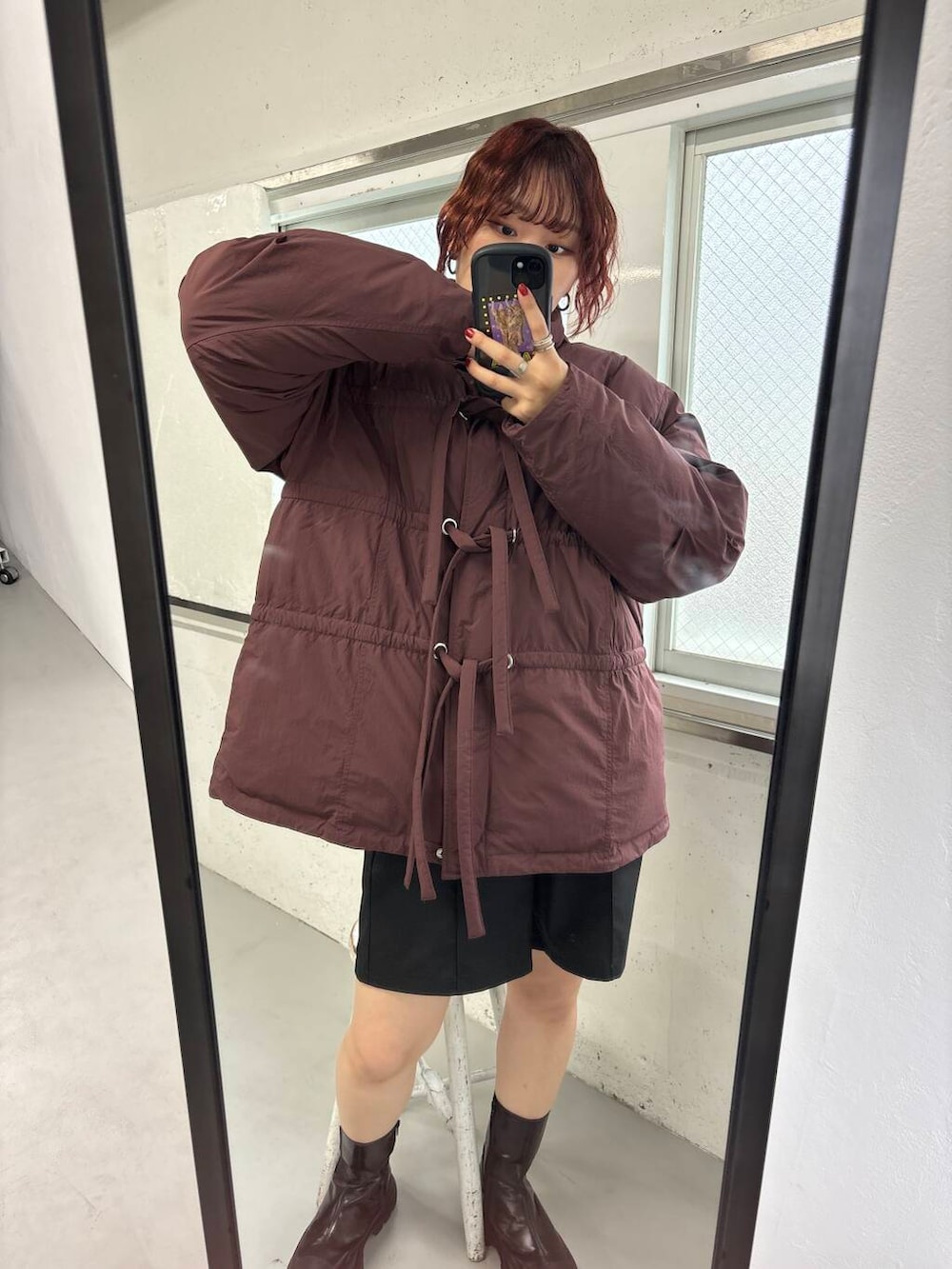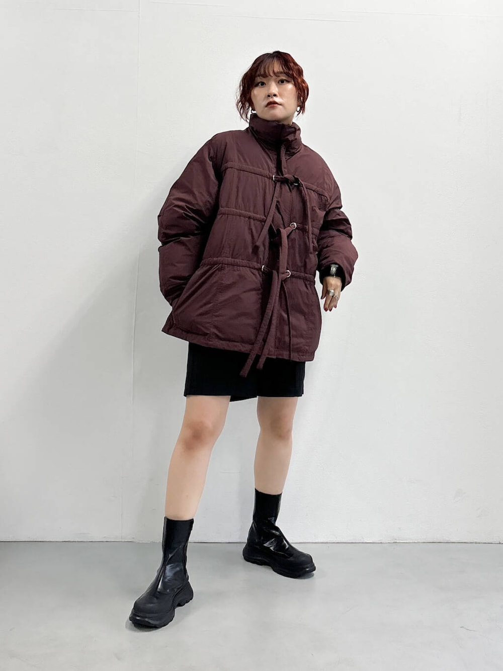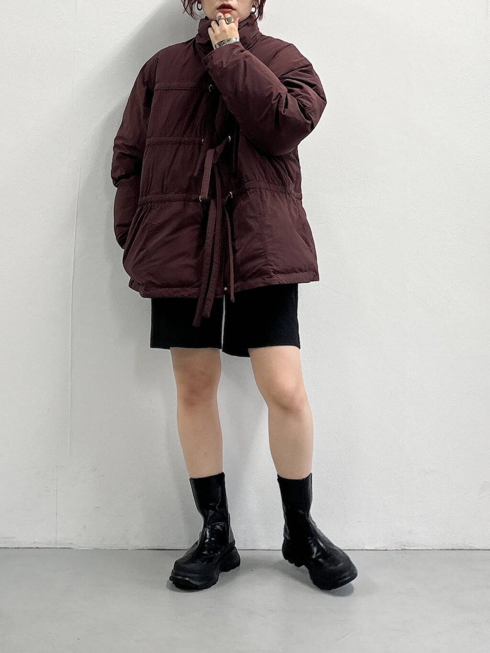 ウエストシェイプできるのが魅力!中綿ジャケット特有の着ぶくれ感をなくすことができます〇