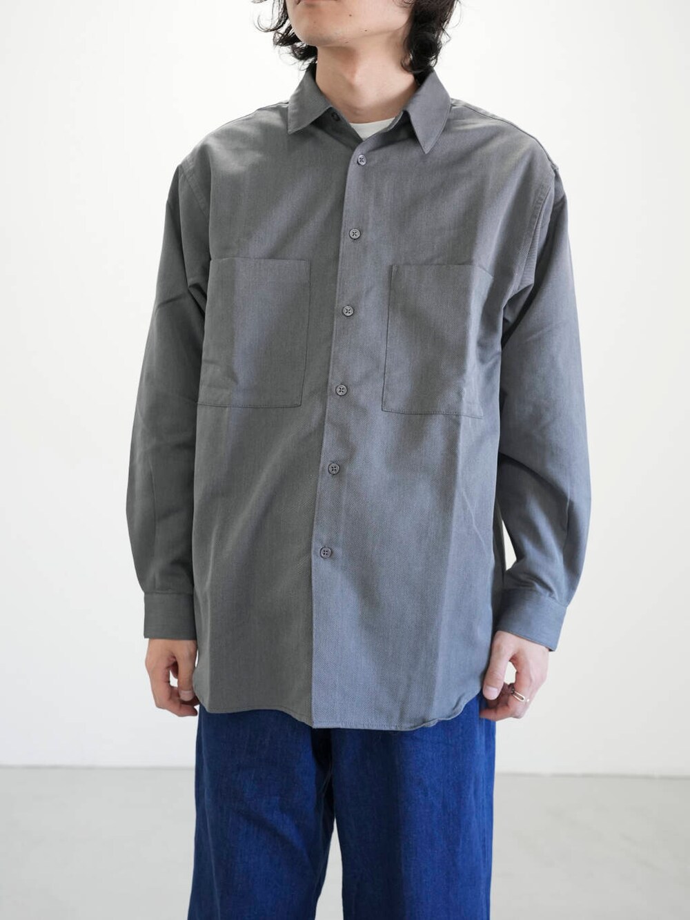 ウールのシャツのような上品な見え方のキレイ目なシャツで一枚でも、インナー使いでも重宝する1着です。