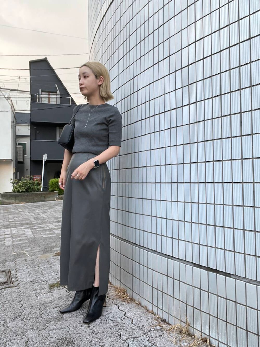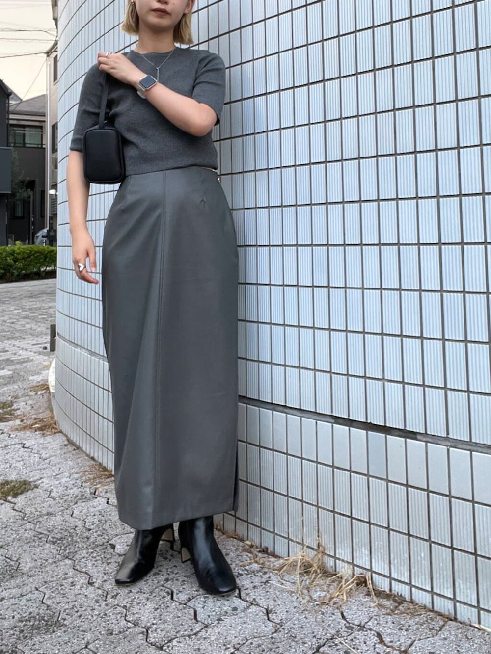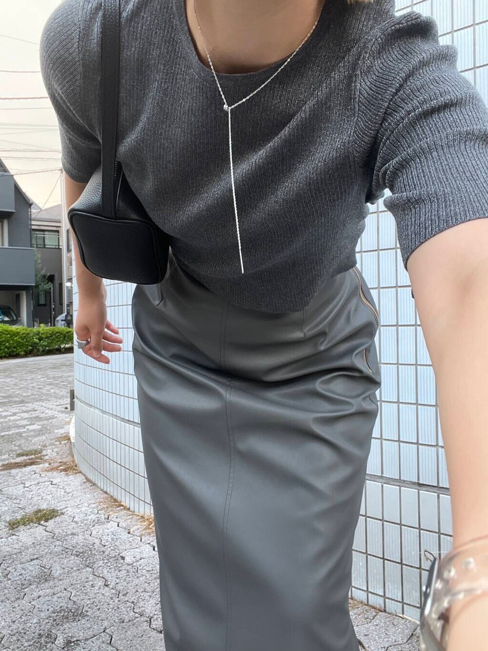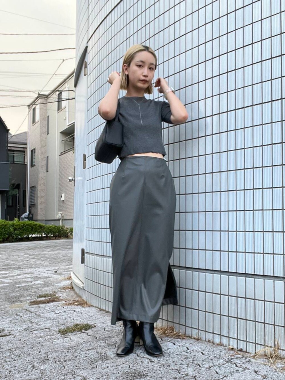 トレンドのクロップドトップスを主役にコーディネート。