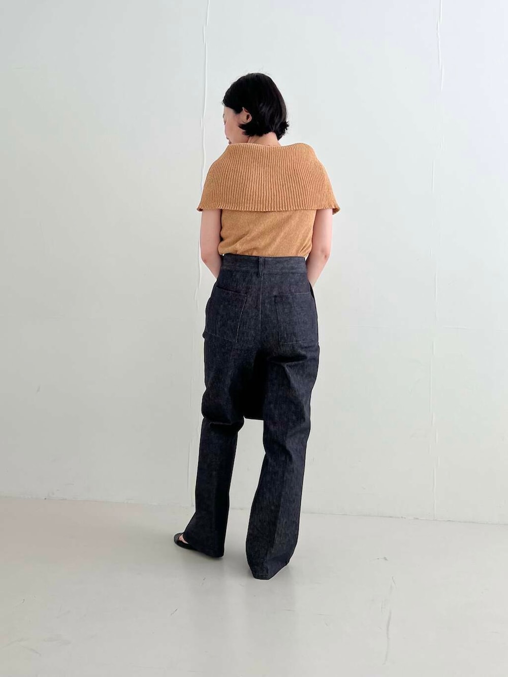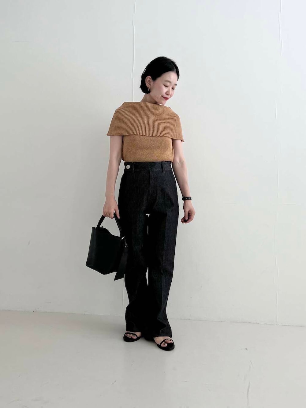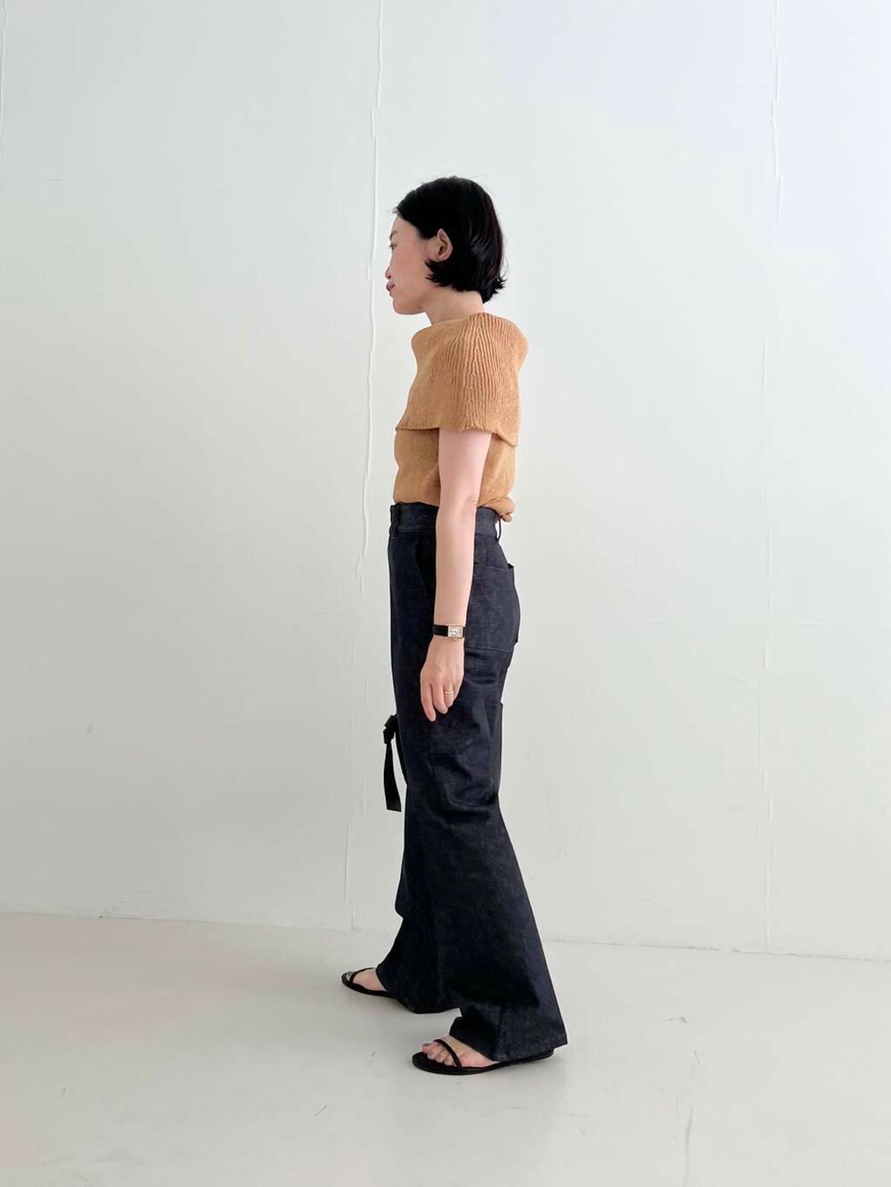 ハリ感のある生地で身体のラインを拾い過ぎず