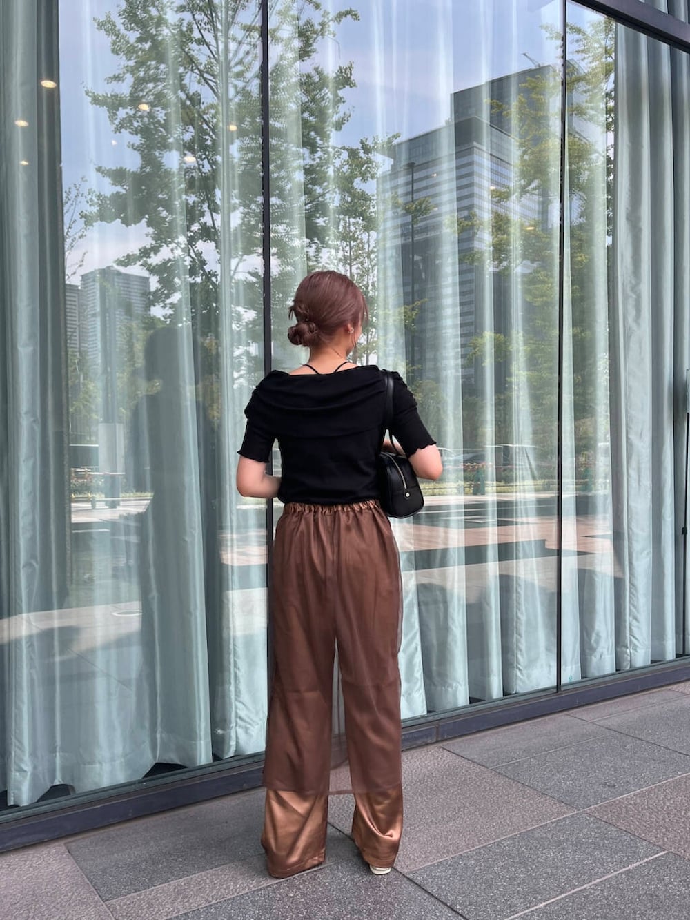 程よい光沢感のあるパンツなので、一枚着るだけで高見えコーディネートに仕上がります!✨