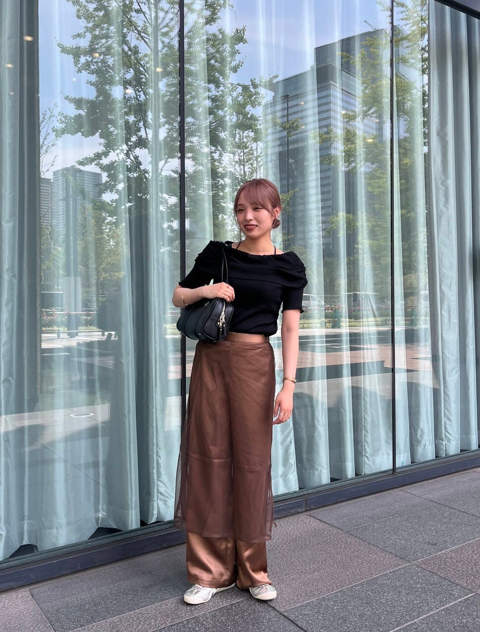 チュールはサイドのドロストで調節できるので印象を変えて着用できます✨