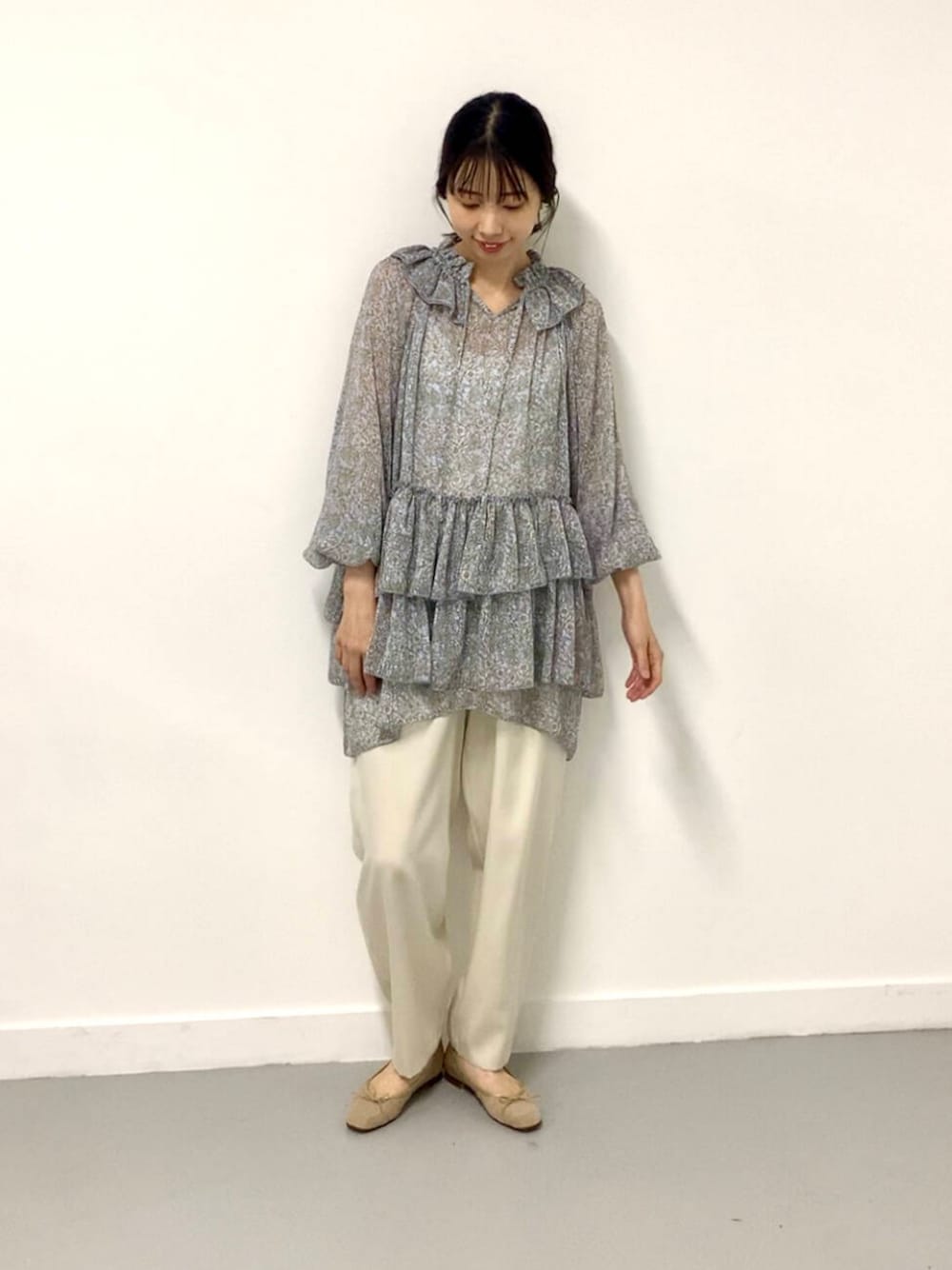 165センチでお尻しっかり隠れる丈になります、フリルデザインが可愛いらしく程よく体型もカバーしてくれますよ◎