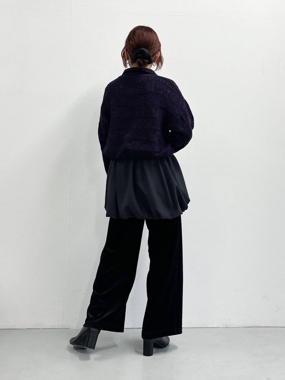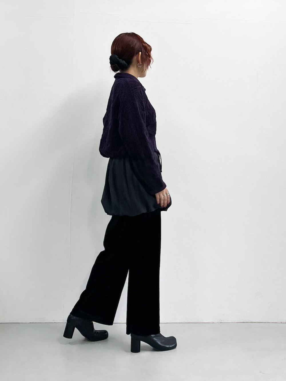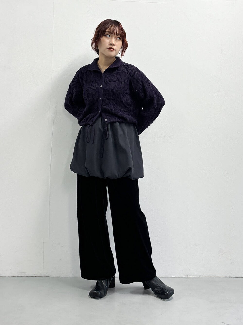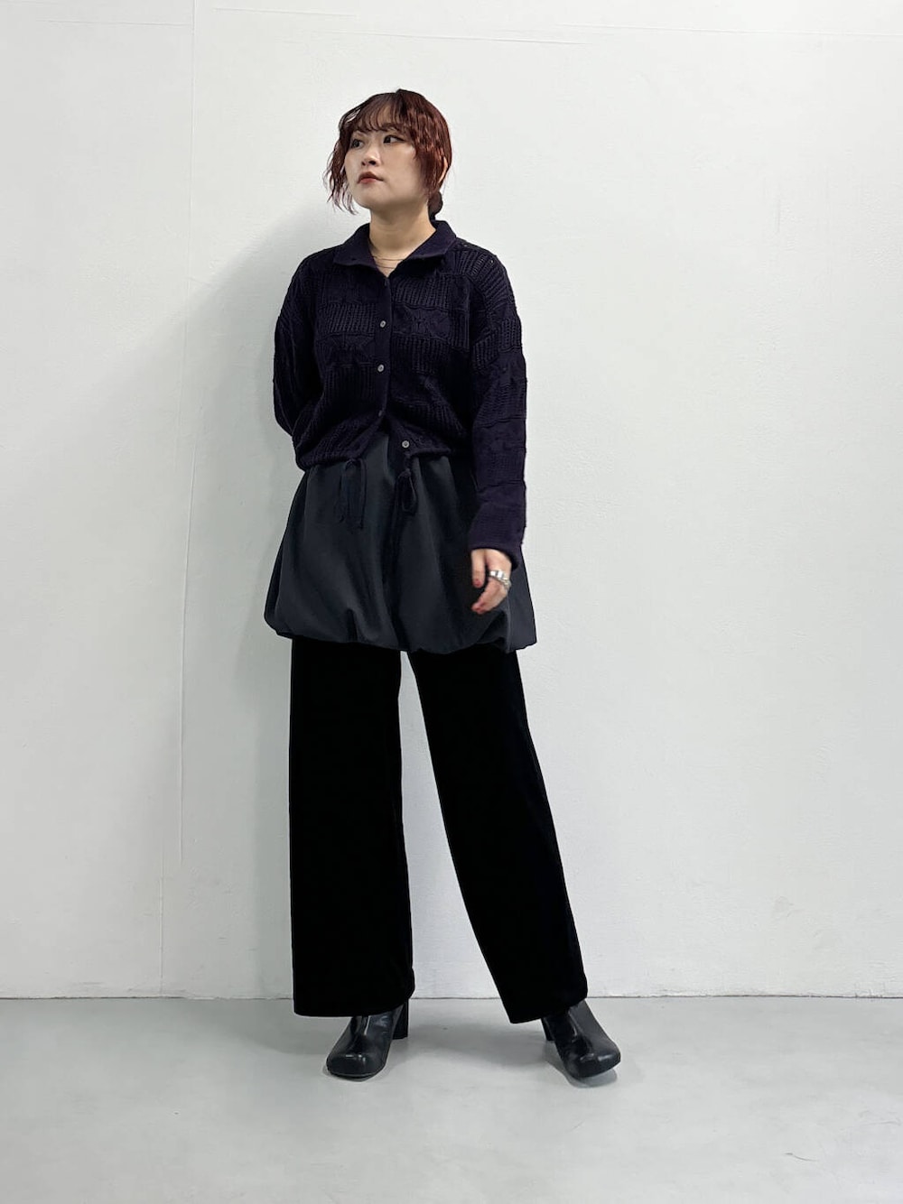 透かし編みニットをメインに組んだモノトーンコーデ〇
