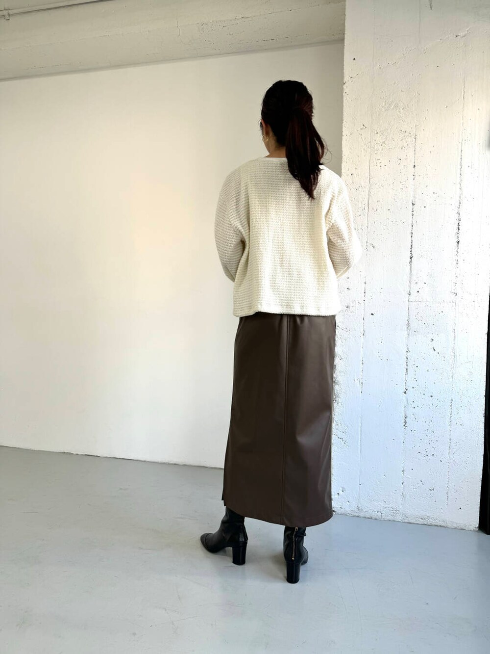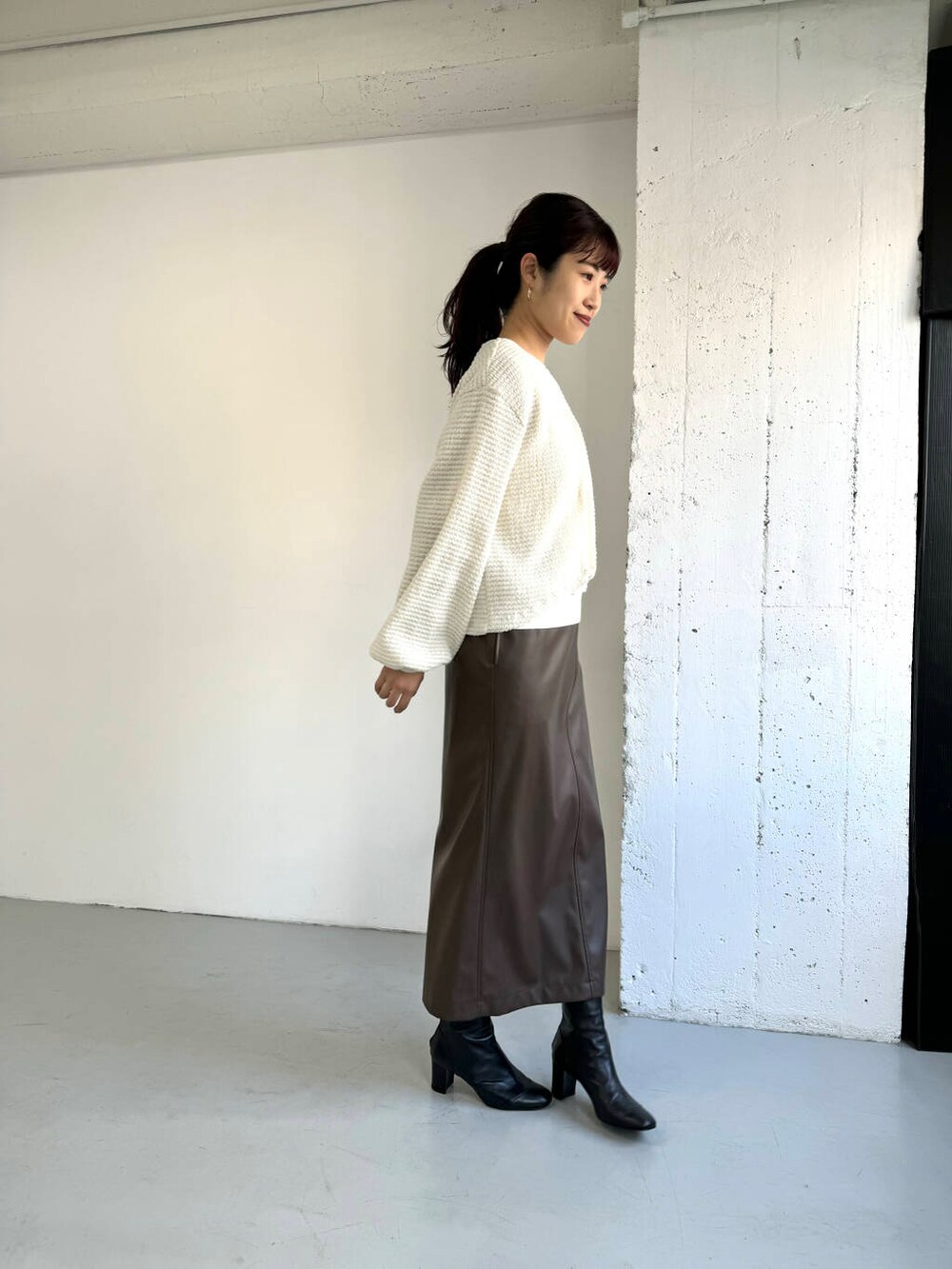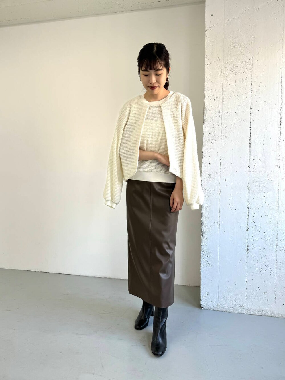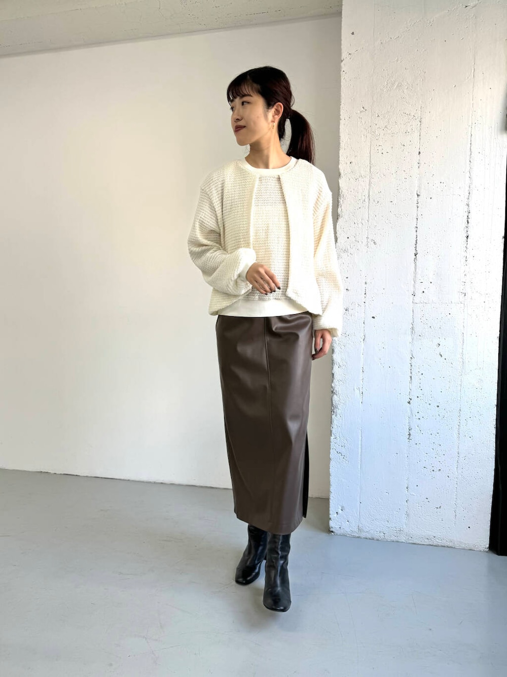 デニムやレザースカートなど辛口なボトム合わせもお勧め。